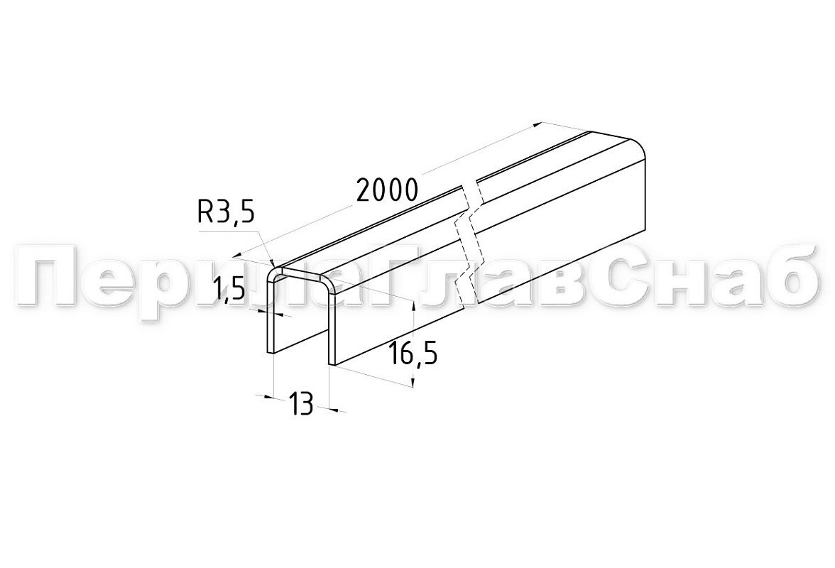 Профиль нержавеющий П-образный 16.5х13х1.5х2000 мм, под стекло 12 мм. Деталь шлифованная, самосборная. Марка детали - AISI 304