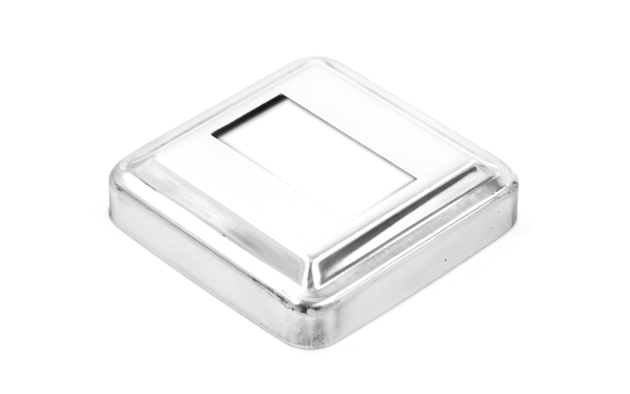 Низ стойки фигурный под трубу 40х40 мм, 82х82х0.8, высота 19 мм, полированный (AISI 304) k030