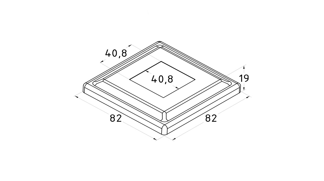 размер 82х82, высота 19 мм, отверстие 40.8х40.8 мм