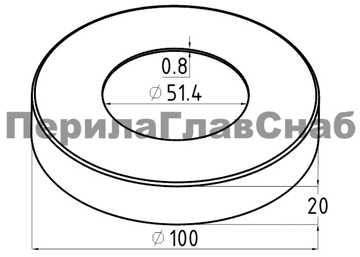 Низ стойки Ø50.8 мм, S=0,4 мм, внешний 100х12 мм, полированный, AISI 201 k007-10 купить в Казани