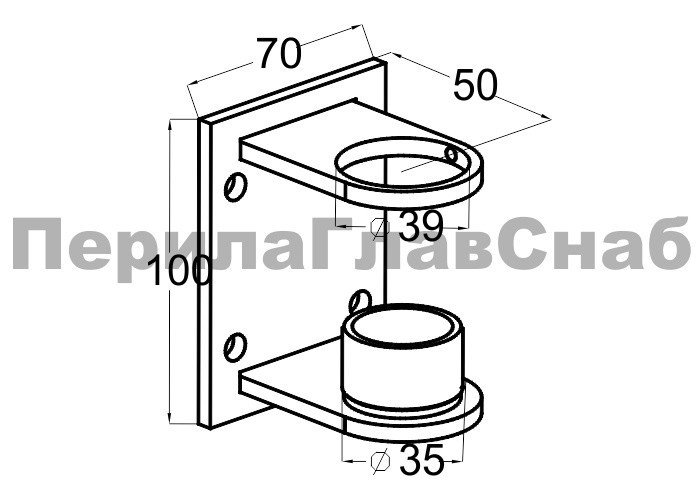 Цанга под трубу Ø42.4 мм, полированная #600, AISI 304, 3 отв. Ø7 мм, 3 отв. Ø9 мм, k334 купить в Казани