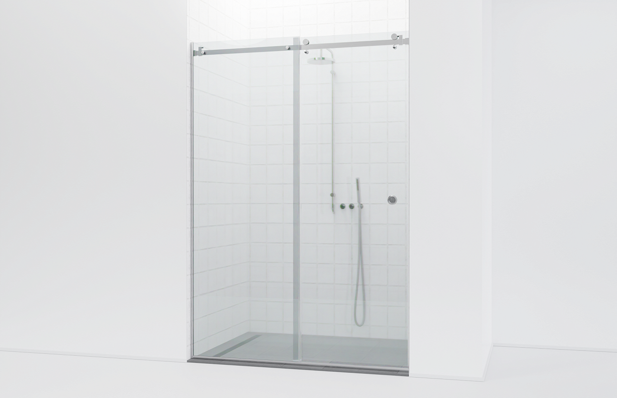 Предназначен для монтажа душевой перегородки в проеме на профиле с раздвижной дверью. В комплект фурнитуры входят:
