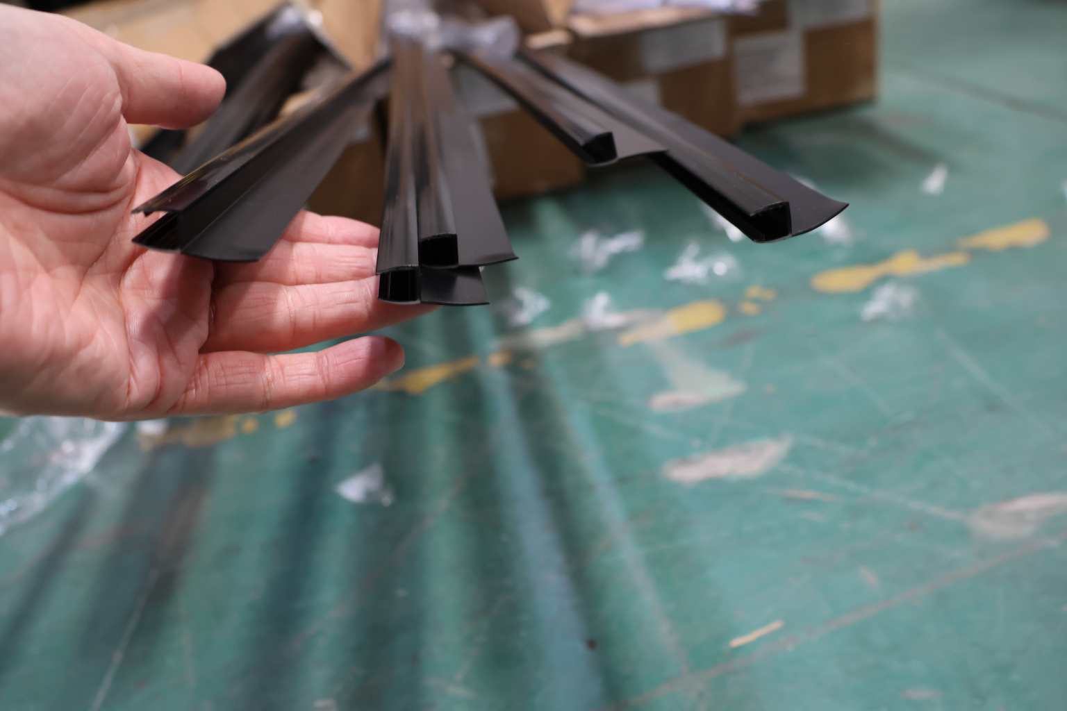 - Уплотнитель имеет исполнение непрозрачной (черной) поверхности, выполнен из материала ПВХ. Имеет Ч-образный профиль. Толщина одного типоразмера составляет – 2200 мм.