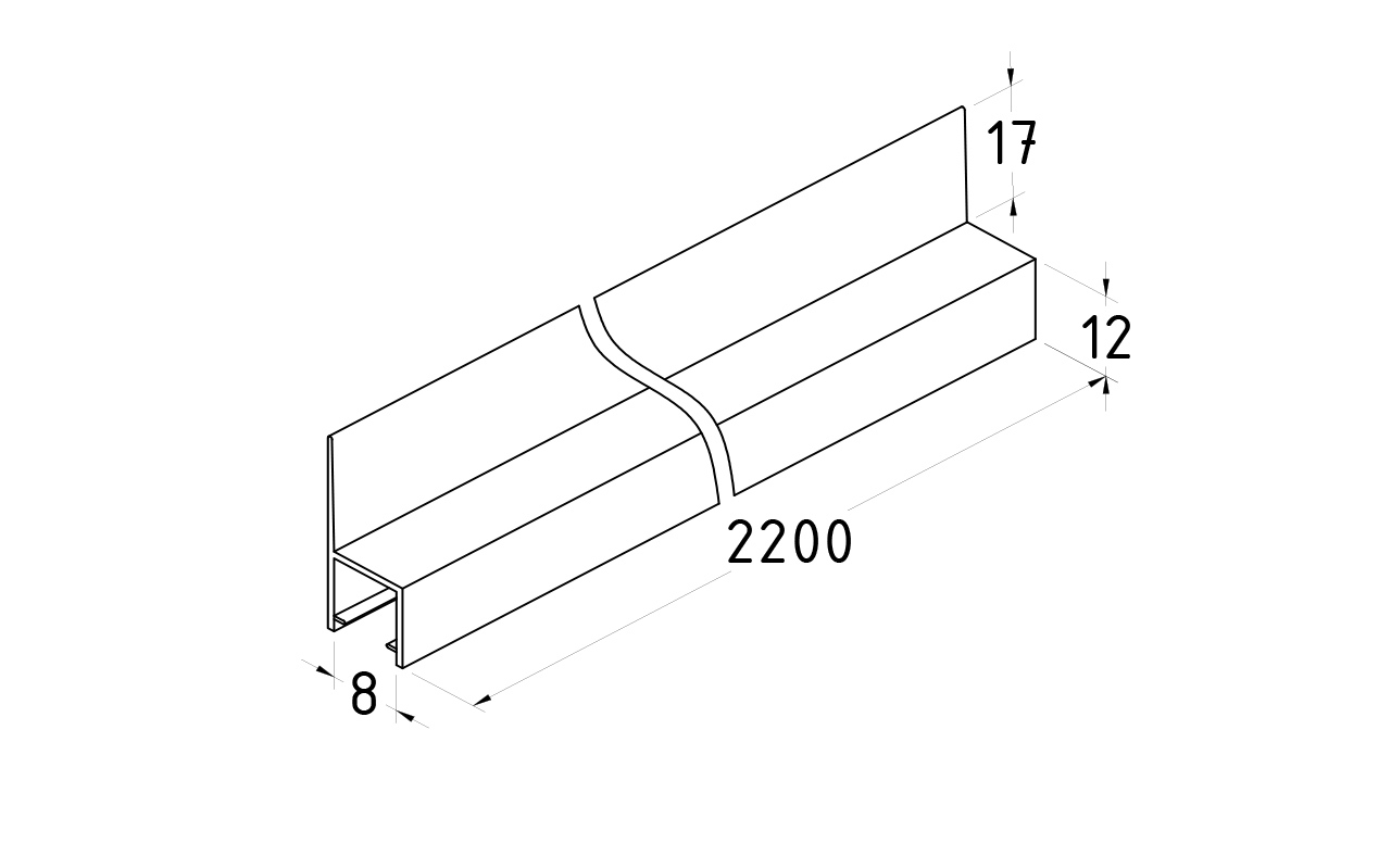 Уплотнитель для стекла 8 мм, непрозрачный черный, 180°, стекло-стекло 2200 мм t204-2 BL-U