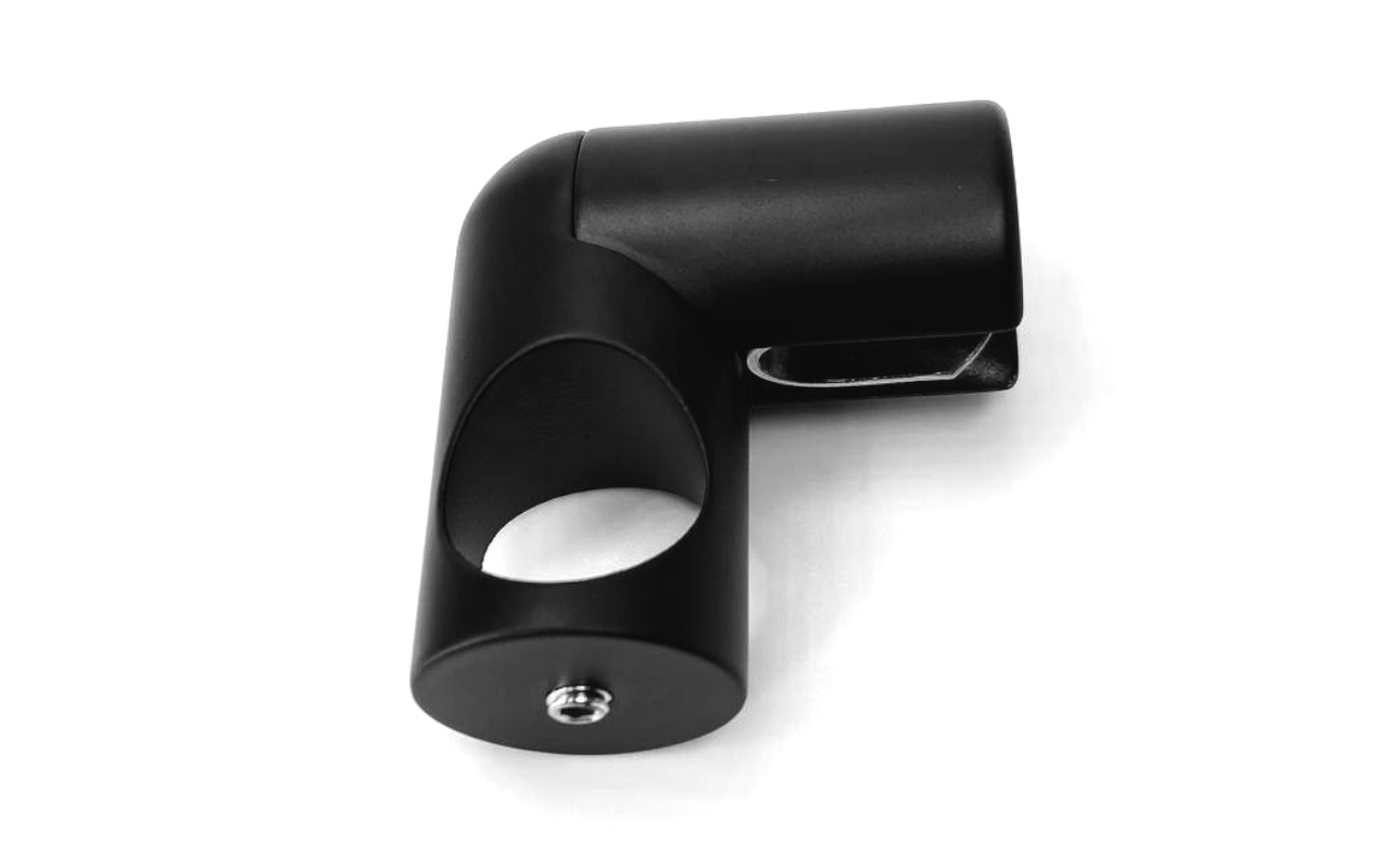 Коннектор предназначен для крепления круглой трубы 19 мм к стеклу в горизонтальной ориентации параллельно стеклу, при монтаже штанг верхней обвязки душевых кабин.