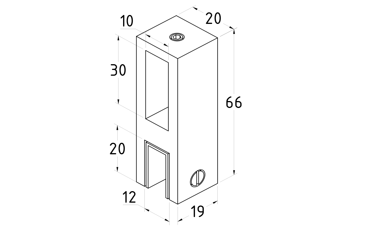 Соединитель предназначен для крепления труба 30х10 к стеклу в вертикальной ориентации при монтаже штанг верхней обвязки душевых кабин.