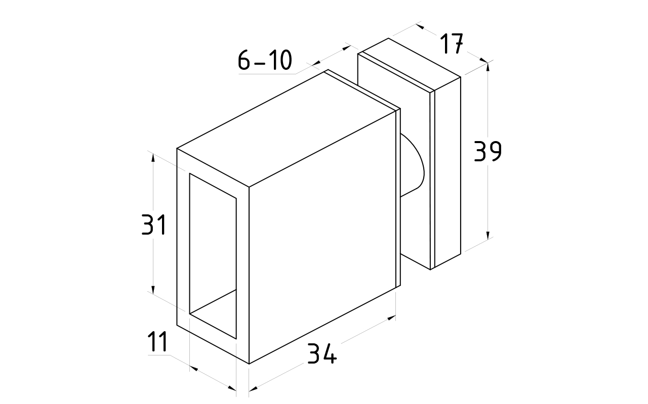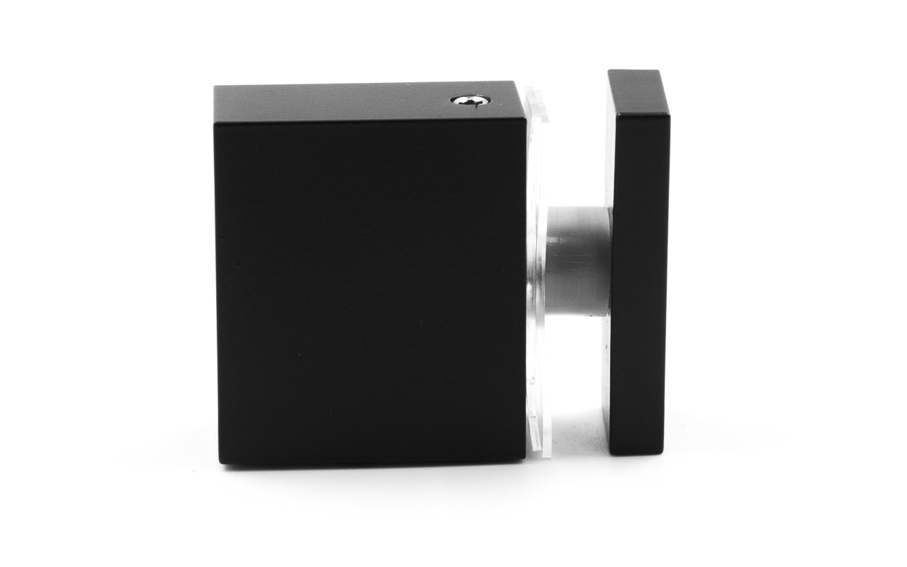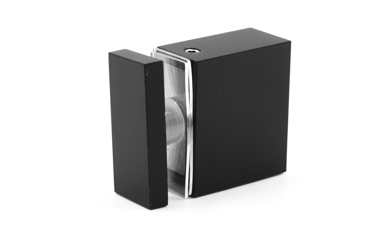 Крепится к стеклу через отверстие 14 мм, соединительные прокладки препятствуют прямому контакту металла и стекла, что способствует сохранению целостности перегородки. Габаритные размеры прямоугольной штанги составляют 30х10 мм
