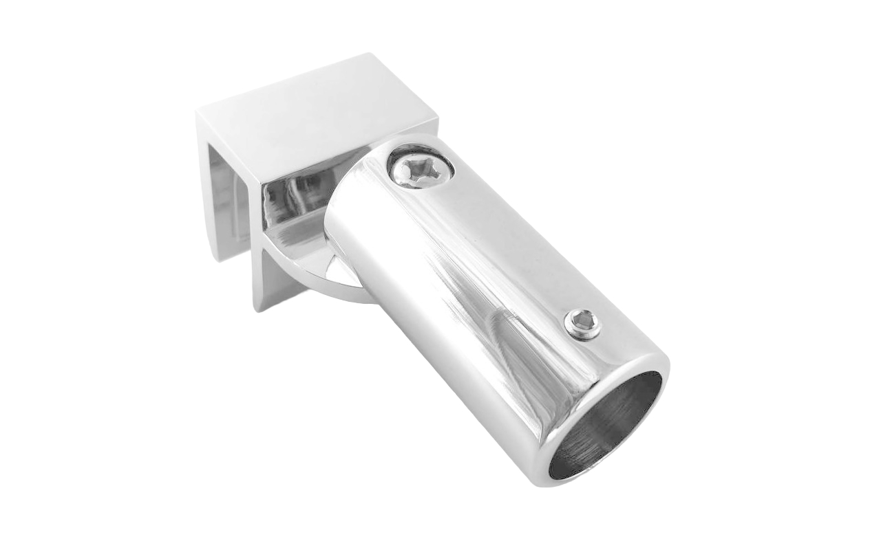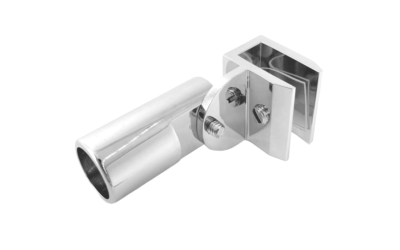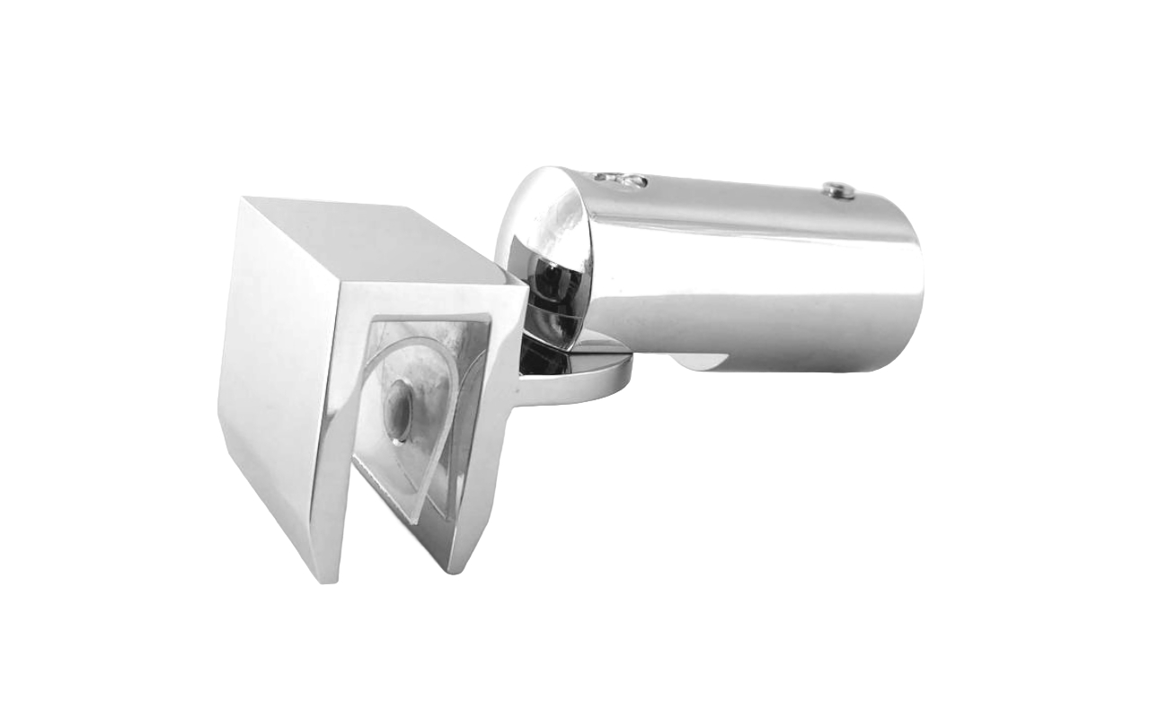 Коннектор предназначен для крепления трубы 19 мм к стеклу под произвольным углом при монтаже штанг верхней обвязки душевых кабин.