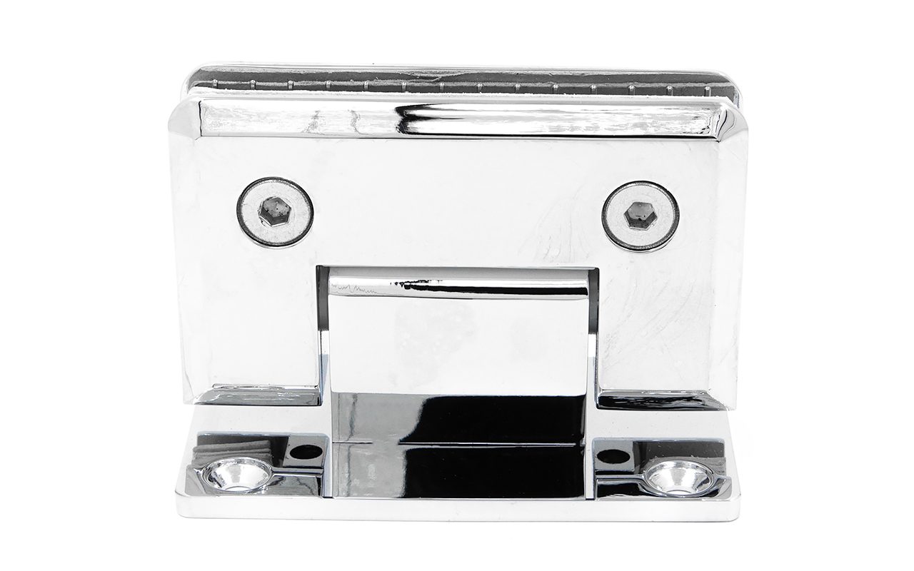 Петля из латуни с полированной поверхностью из хрома предназначена для стыковки между собой конструкционных элементов из стекла, толщина которых находится в диапазоне от 8 до 10 мм. Максимальный вес двери на 2 петли составляет 45 кг. В конструкции заложена система скрытого крепежа. Имеет функцию доводчика до закрытия от 25° градусов. Максимальный угол разведения стыковочных элементов в плане составляет 90° градусов.