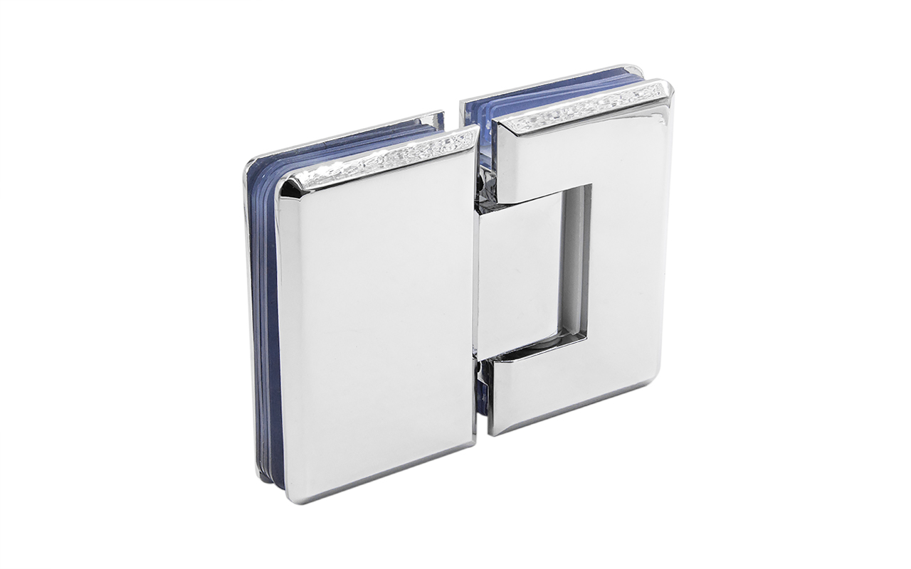 Петля из нержавеющей стали с полированной поверхностью из нержавеющей стали предназначена для стыковки между собой конструкционных элементов из стекла, толщина которых находится в диапазоне от 8 до 10 мм. Максимальный вес двери на 2 петли составляет 45 кг. В конструкции заложена система скрытого крепежа. Имеет функцию доводчика до закрытия от 25°. Максимальный угол разведения стыковочных элементов в плане составляет 180°