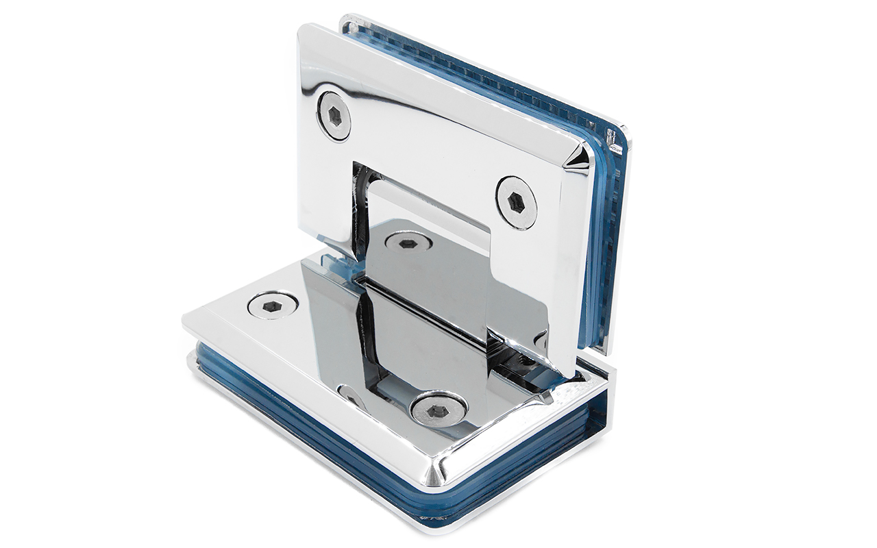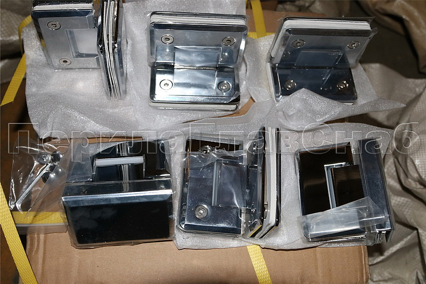 Материалы из нержавеющей стали отличаются надежностью стыковки стеклянных полотен, а также высокой стойкостью к коррозии. Именно последнее качество лежит в основе долговечной эксплуатации. Представленный здесь вид петель имеет конфигурацию стекло-стекло и позволяет закрывать двери душевых кабин в диапазоне с 250 до 900. Нагрузка на две петли- 35 кг. В них реализована функция доводчика, что делает их эксплуатацию эргономичной. Прокладка обеспечивает место стыковки двух полотен из стекла не только герметичностью, но и поглощением вибраций.