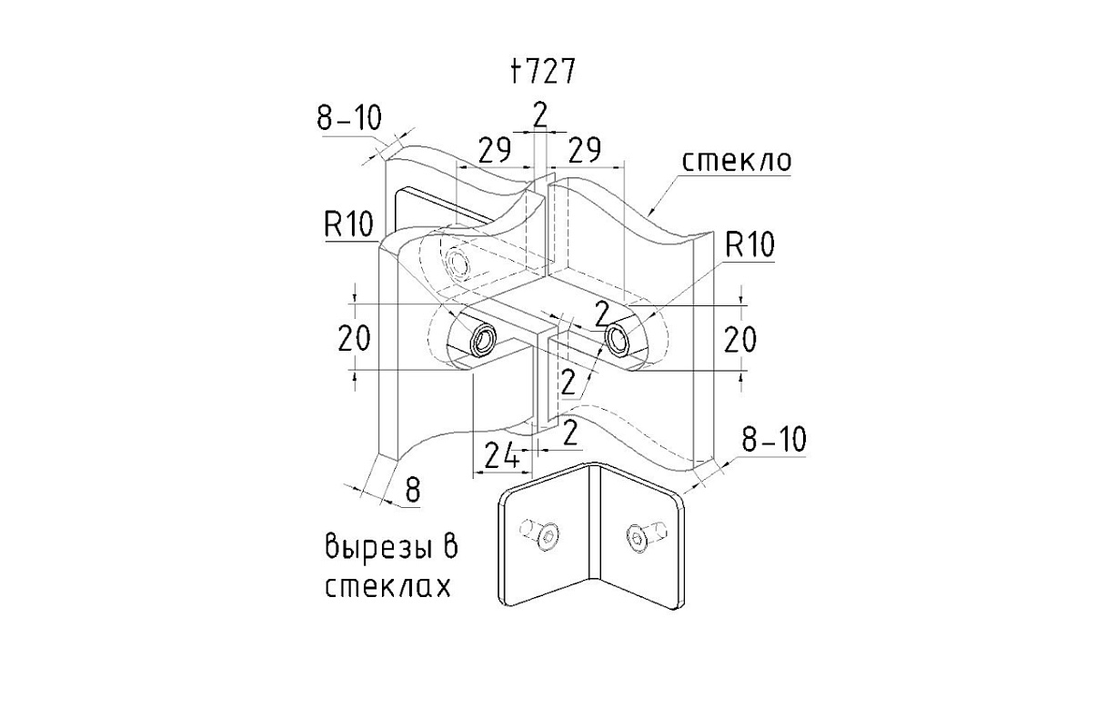 Коннектор для душевой кабины на 3 стекла, материал - латунь-хром, поверхность - полированная