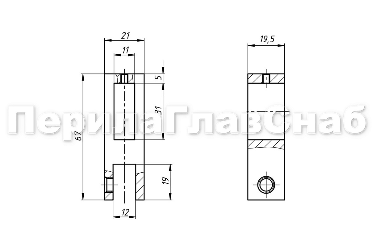 Высота соединителя равна 66 мм. Длина равна ширине и составляет 20 мм. Габаритные размеры прямоугольной станки составляют 30х10 мм. Перемычка соединителя имеет толщину 10 мм. Толщина стенки равна 4 мм. Имеет 3 крепежных отверстий, диаметр которых равен 2,5 мм.
