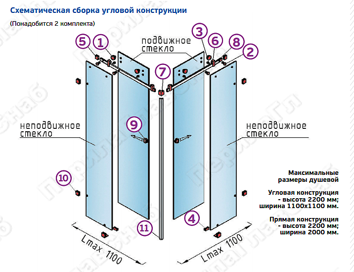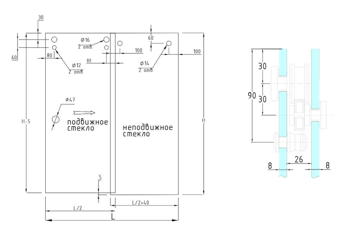 Комплект раздвижной системы для стеклянной душевой, марка стали- AISI 304. поверхность- полированная