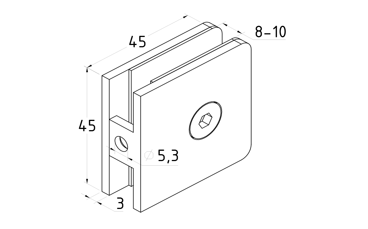 Коннектор для душевой кабины стена-стекло, 45х45, AISI 304 полировка, вырез 61 t720 PSS