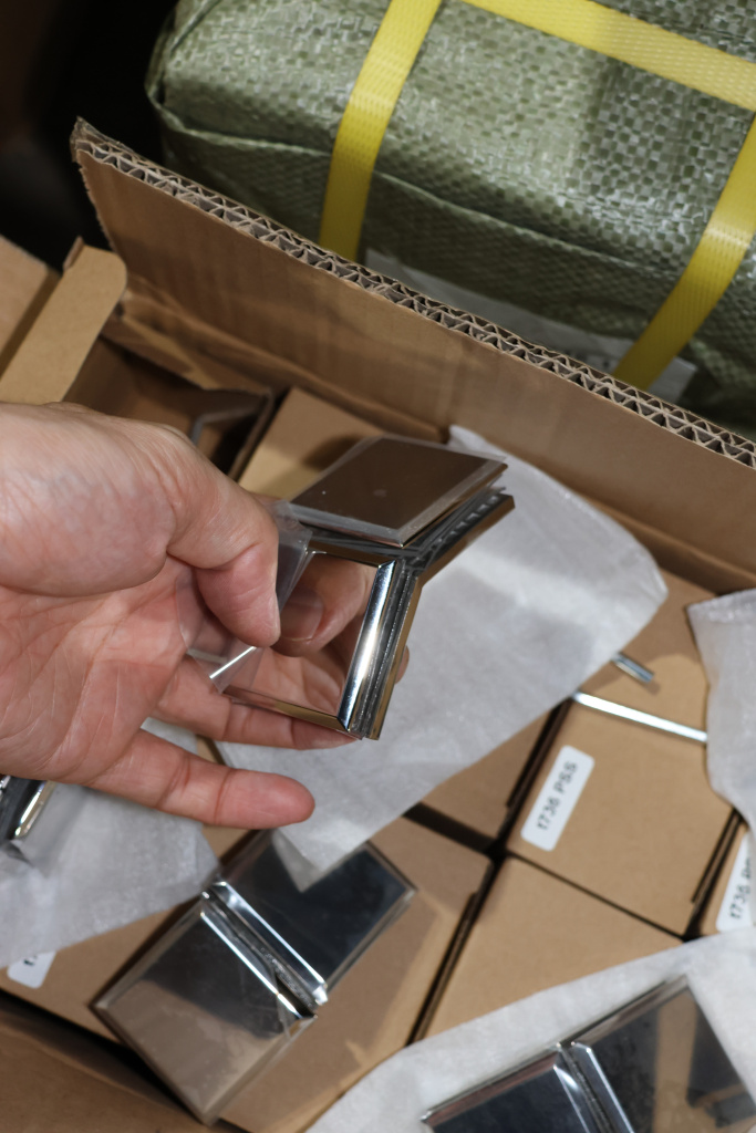 Коннектор для душевой кабины стекло-стекло 135°, марка стали- AISI 304, поверхность- полированная.