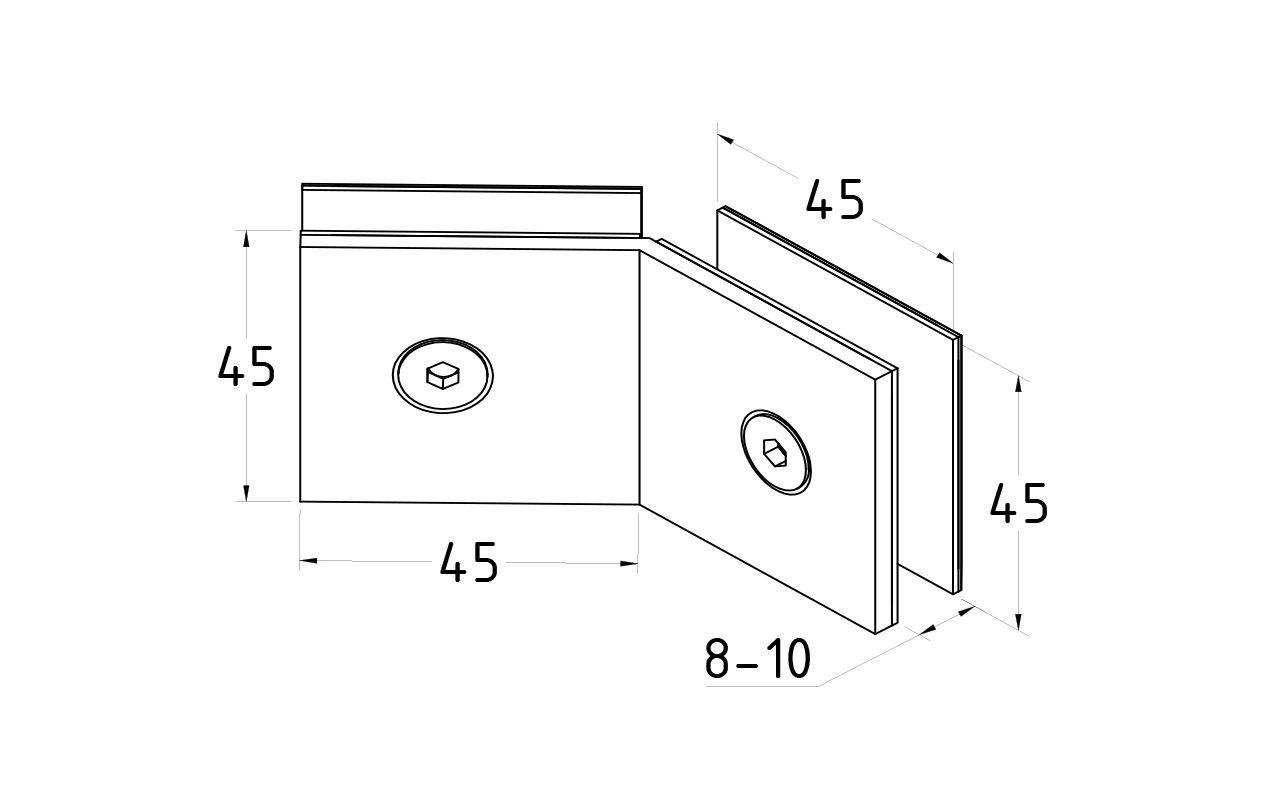 t726-2 SSS - коннектор для душевой кабины стекло-стекло 135° 45х45 мм. Деталь шлифованная, марка стали - AISI 304, имеет сглаженные углы. менее практичен для дизайнерских решений.
