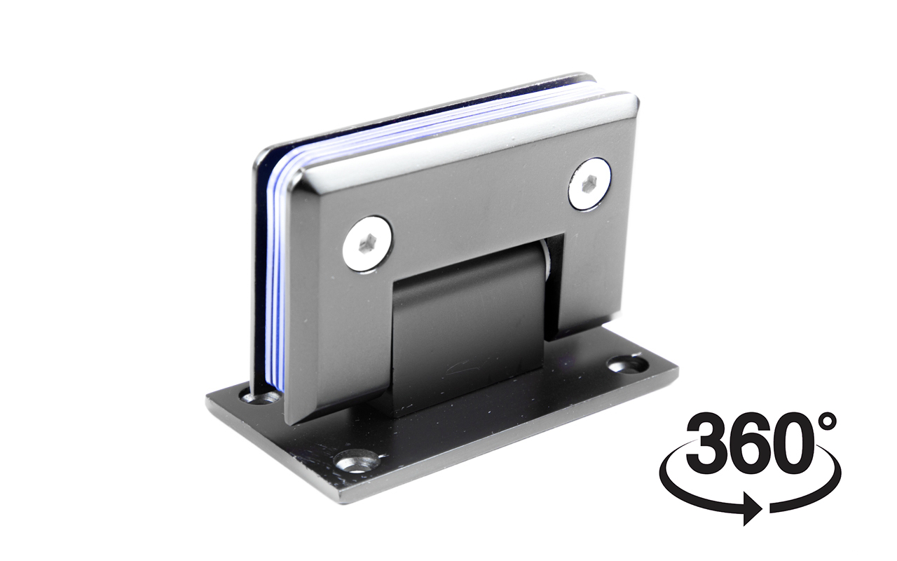 Петля стена-стекло предназначена для соединения стеклянной двери душевой кабины со стеной ванной комнаты. Двухстороннее крепление служит для устойчивого закрепления петли на стене. Масса двери может составлять до 35 кг на две петли.