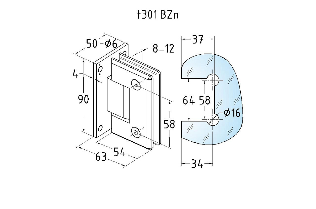 Петля для душевой кабины стена-стекло 90°, 90*55, цинк, черн. t301 BZn