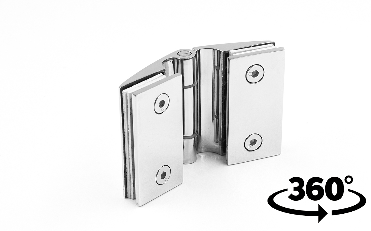 Петля односторонняя стекло-стекло 180°, без фиксации и самозакрывания, полированная. Выдерживает нагрузку 35 кг на две петли. Материал нержавеющая сталь AISI 304