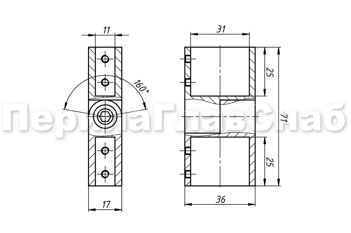 Коннектор для трека 30х10 мм регулируемый. Поверхность детали - полированная. Марка стали - AISI 304