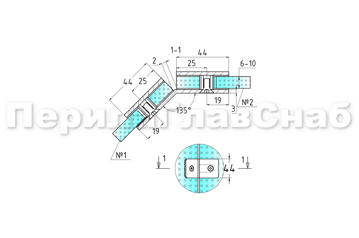 Коннектор для душевой кабины стекло-стекло 135° 45х45 мм. Деталь шлифованная, марка стали - AISI 304