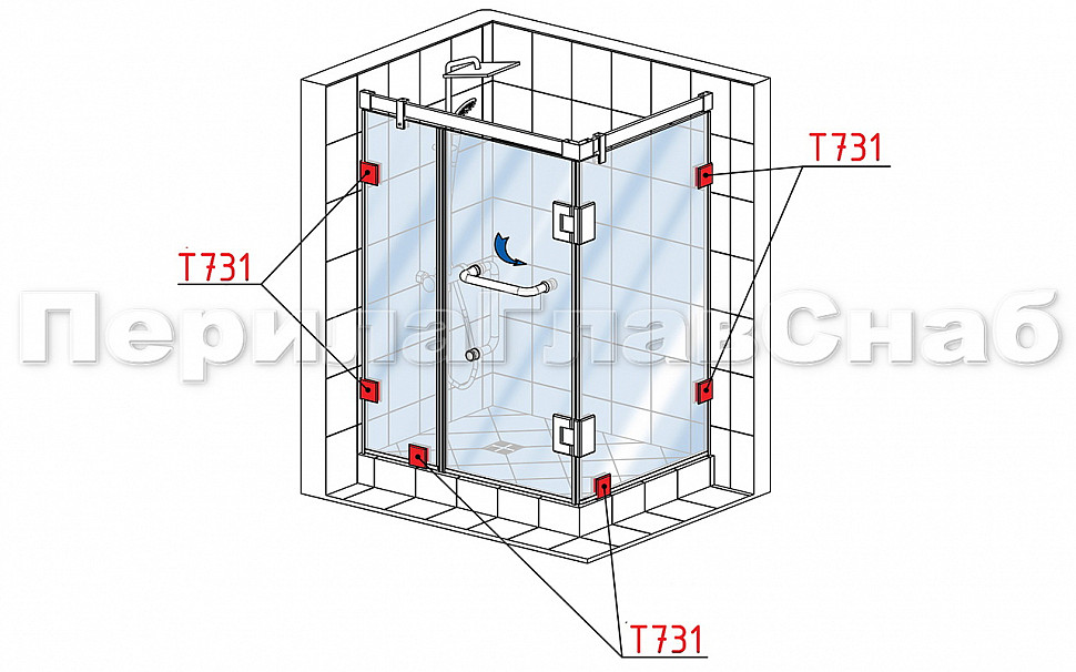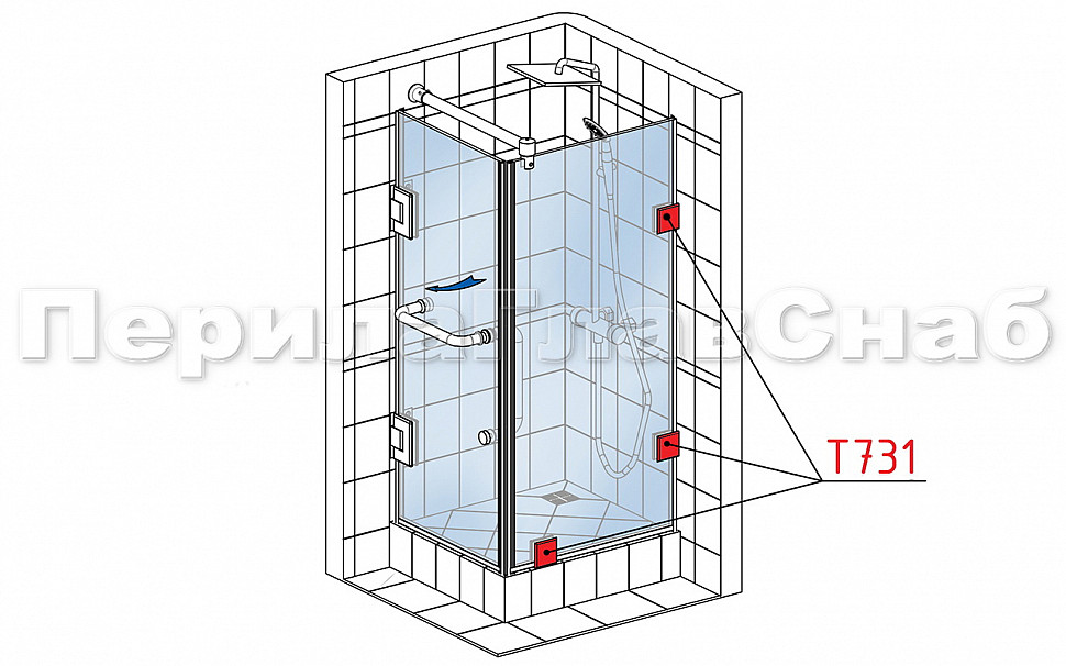 Коннектор для душевой кабины стекло-стекло 135°, 45х45, цинк , вырез 71 t736 PZn купить в Казани