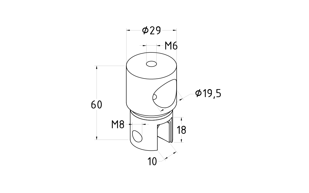 Соединитель трубы 19 мм, шарнирный, нержавеющая сталь AISI 304, полированная t915 PSS