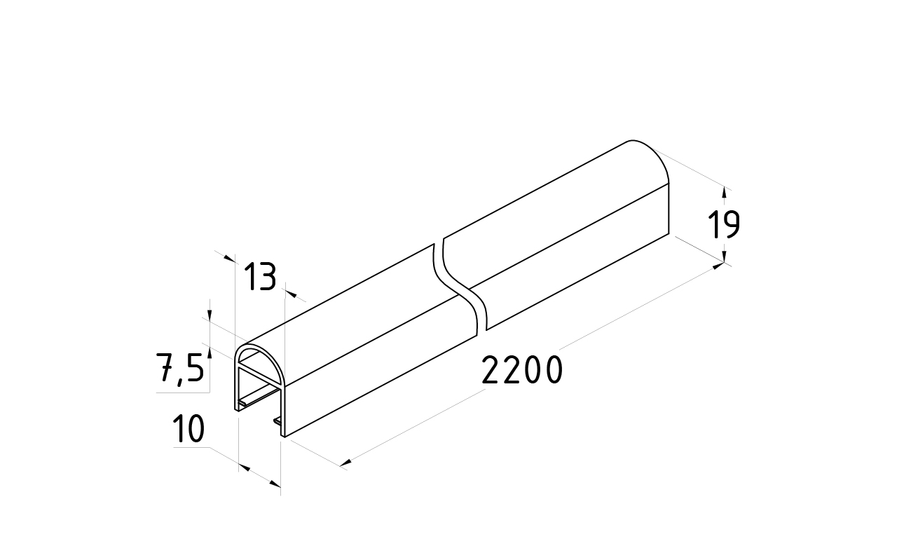 - Имеет черную поверхности, выполнен из материала ПВХ. Длина одного типоразмера составляет – 2200 мм.