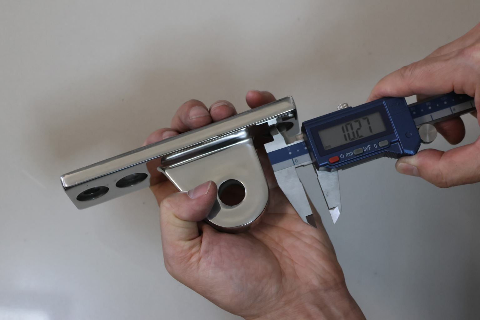 - Надёжность. Конструкция детали позволяет производить крепление на 3 шпильки и за счёт жёсткой фиксации не дает детали двигаться. Таким образом в процессе эксплуатации не происходит ослабление крепежа к стойке.