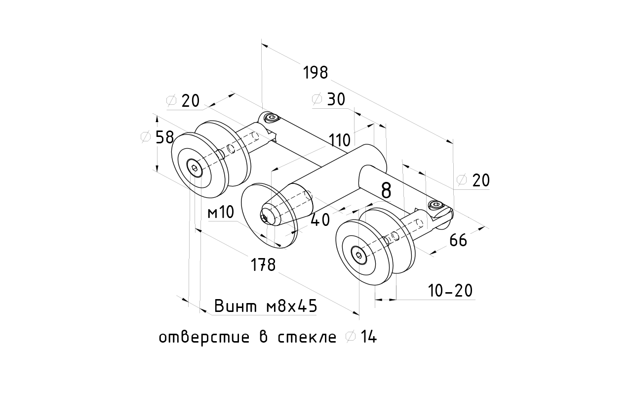 Рутель под стекло 10-26 мм, шпилька М14, регулируемый, разборный (AISI 304) k269-6 купить в Казани