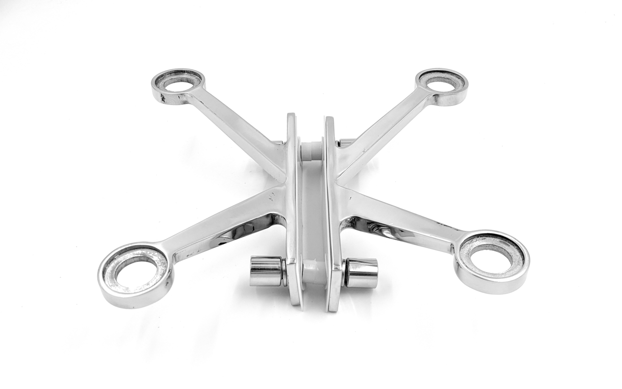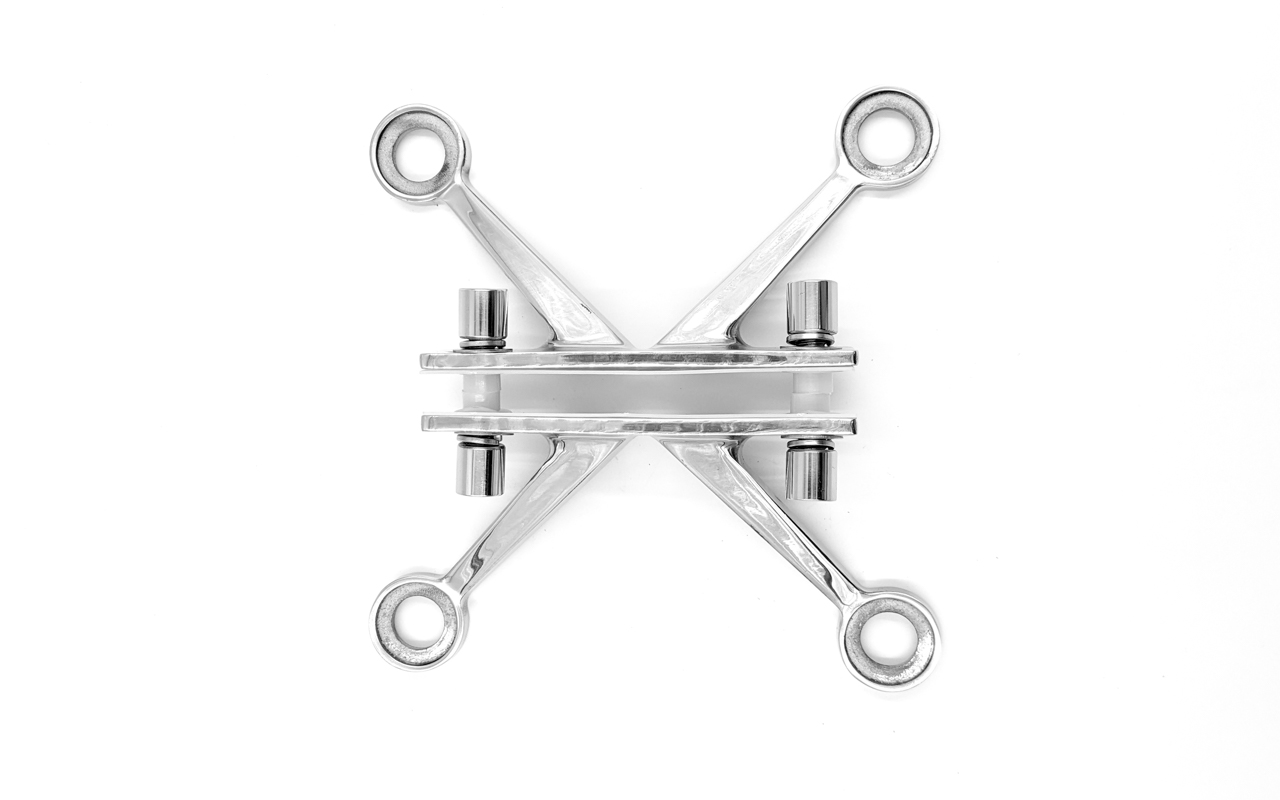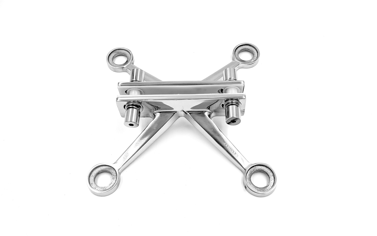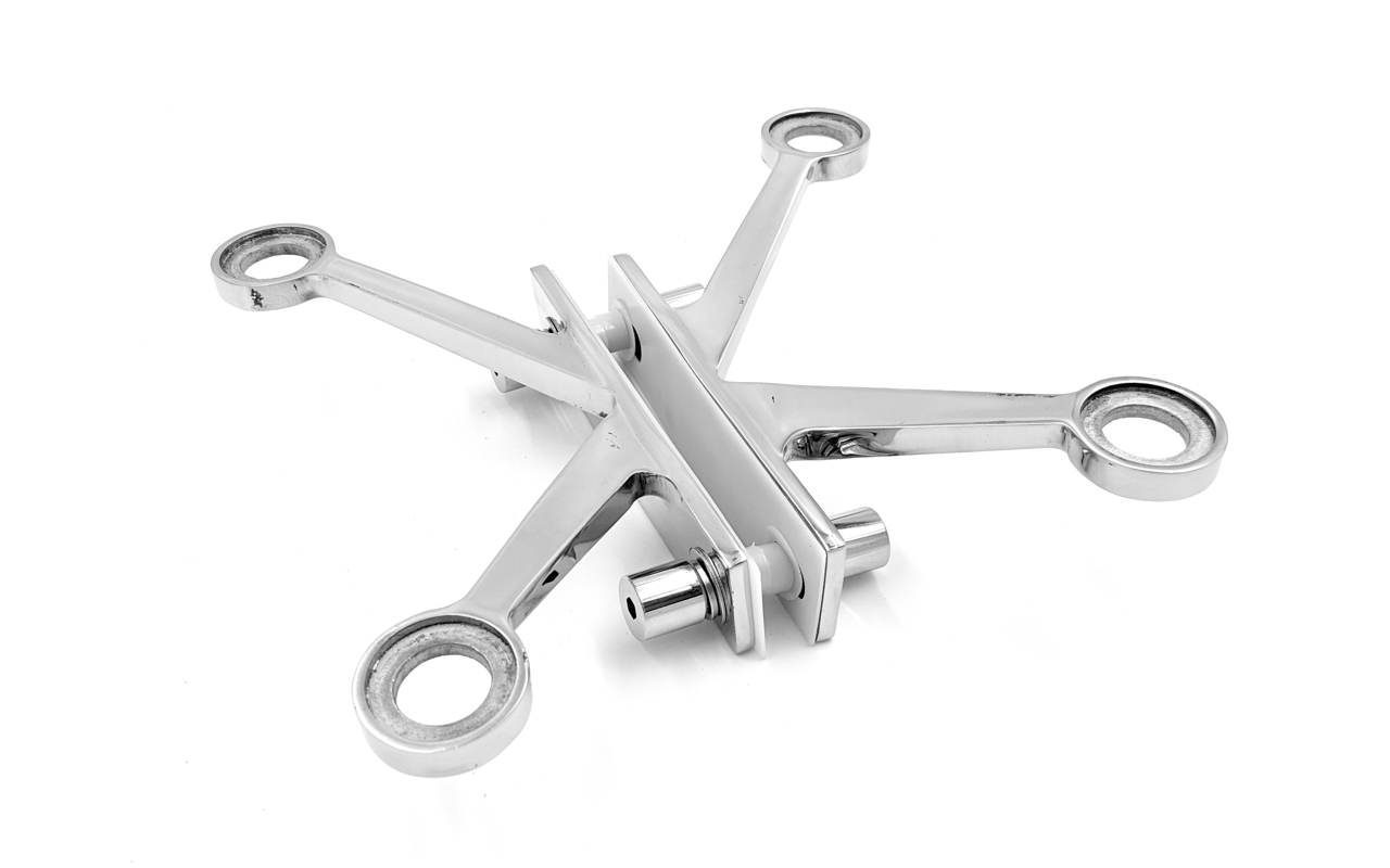 Спайдер – крепеж для вертикального остекления, фасадного остекления, который крепко соединяет между собой стеклянные панели и крепит стекло к несущему металлическому каркасу. Металлические крестовины «паук» изготавливаются из высокопрочной легированной стали, благодаря которой изделие сохраняет свои физические и механические свойства при воздействии внешних разнообразных факторов. Этот вид крепежа используется для безрамного остекления, что позволяет сделать остекление не зависящие от бокового крепежа и сохранит внешний вид вашего фасада. Так же Спайдер идеален в случае необходимости ремонта, он позволяет легко демонтировать стекло и заменить его с минимальными трудозатратами.