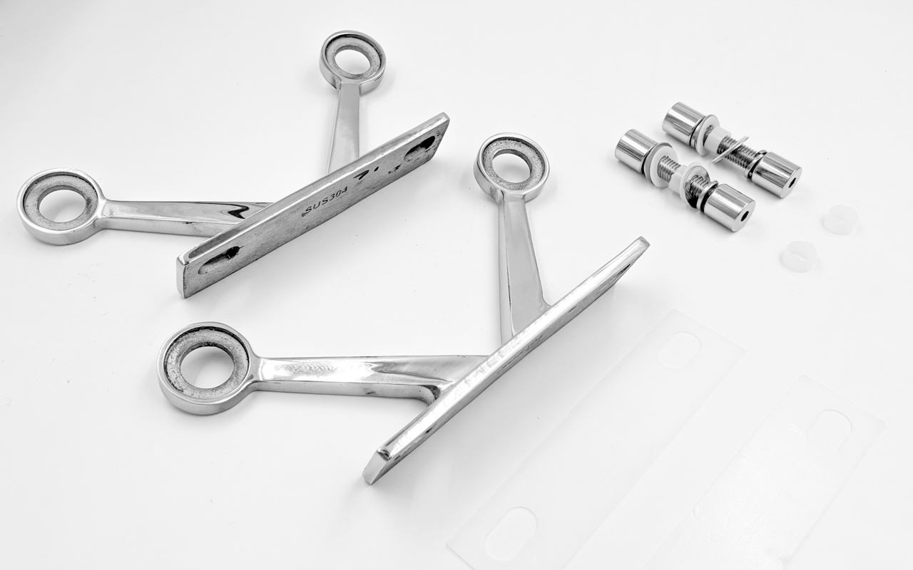 X-спайдер для установки на стеклянное ребро, марка стали- AISI 304. Минимальный размер составляет 14, а максимальный — 24. Однако, если убрать обычные гайки, то размер можно сделать больше.