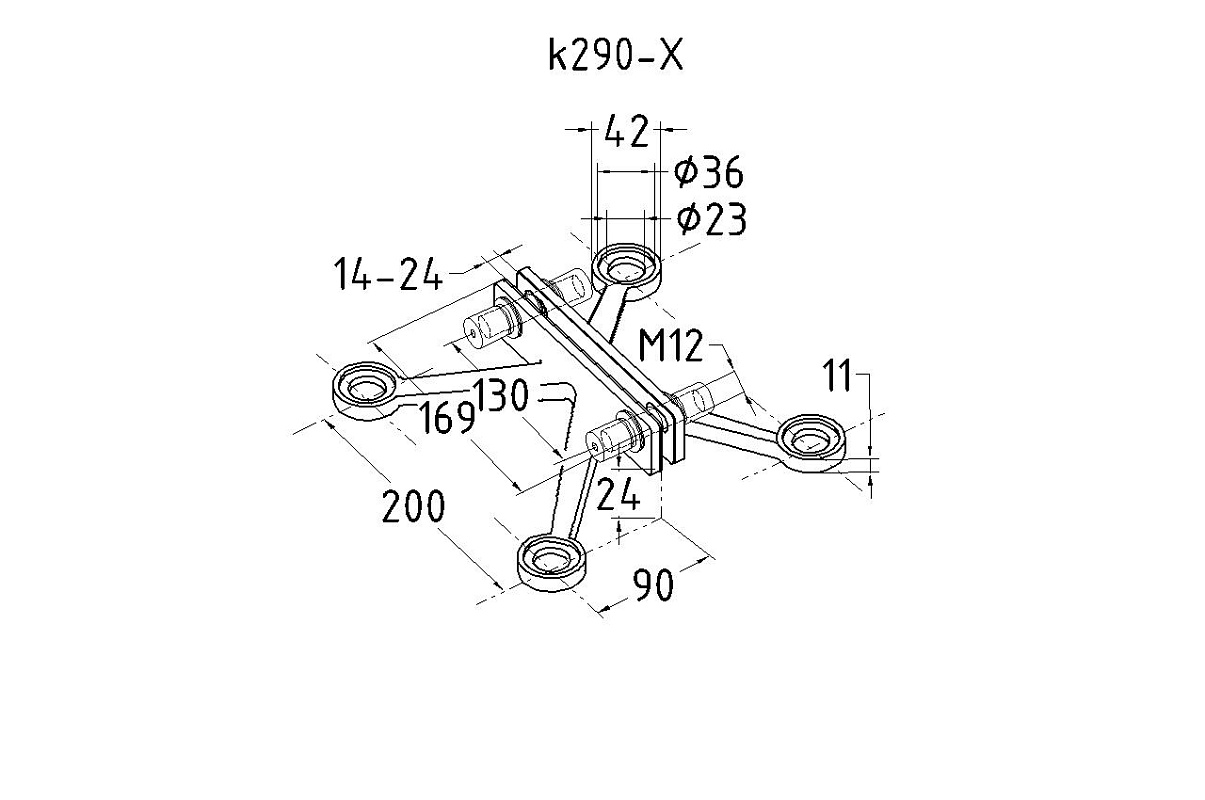 X-спайдер для установки на стеклянное ребро AISI 304 k290-X