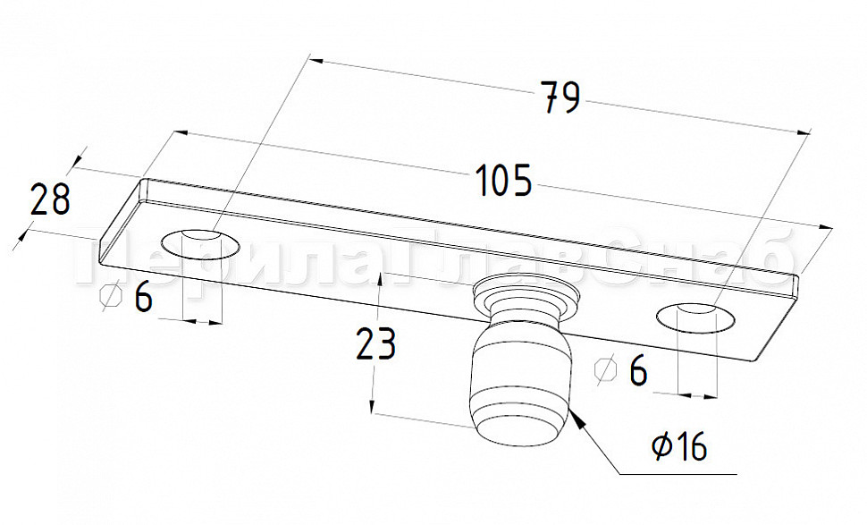 Ось верхняя, полированная, марка стали AISI 304. Представляет собой верхнюю ось для стеклянной маятниковой двери без фрамуги.
