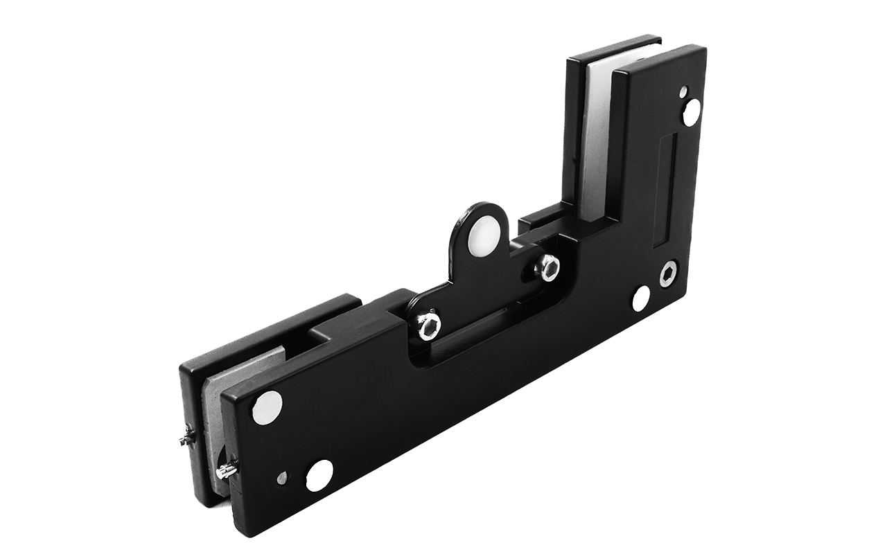 для соединения стационарной панели стеклянной перегородки с верхней фрамугой. Стопор ограничивает открывание двери в любую из сторон по выбору.