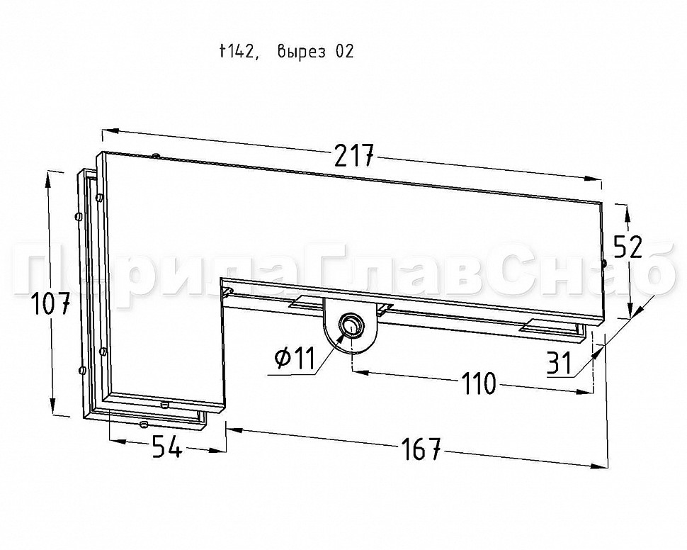 Является ответной частью на стекло для прямоугольного ригеля замка t152, при монтаже замка на верх двери.