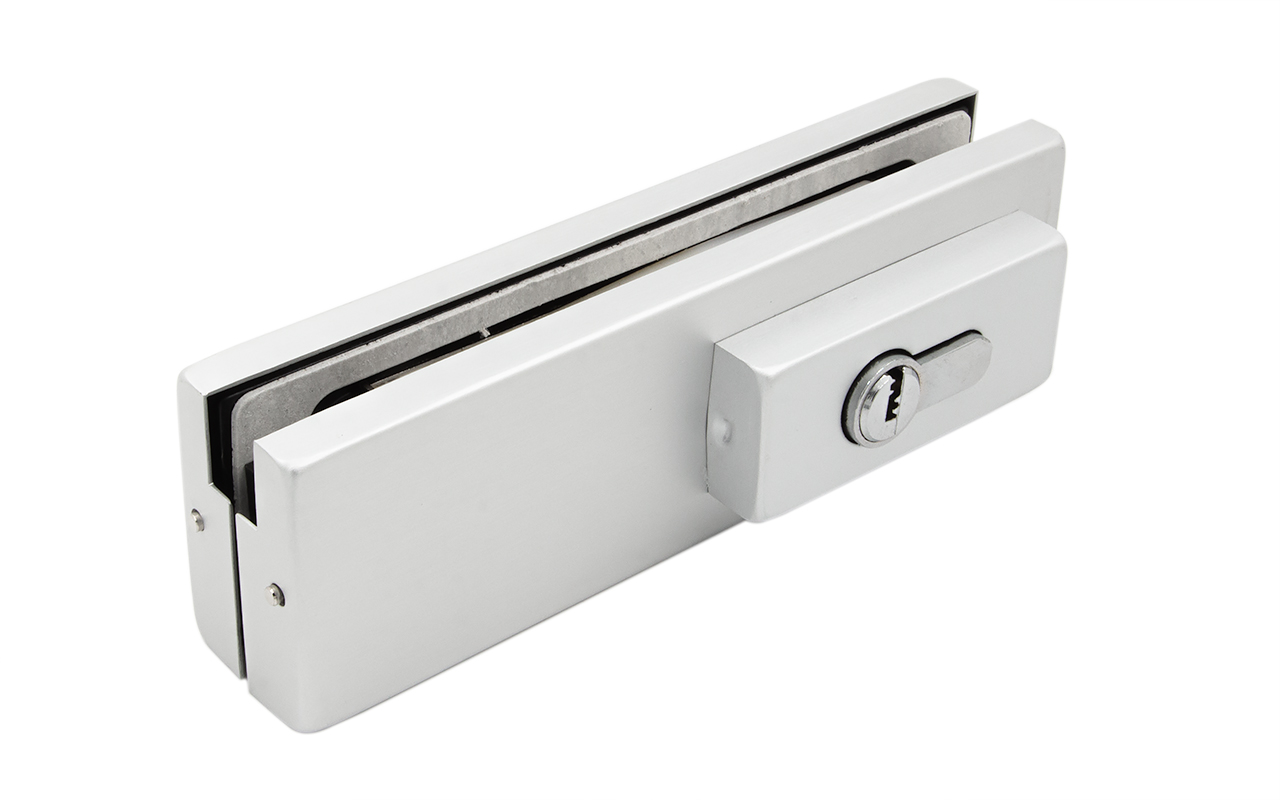 Замок для стеклянной двери угловой с круглым ригелем комплект, под алюминий