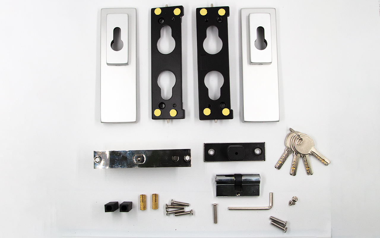 - Надежно запирает стеклянные двери. Проверено на практике: скорее не выдержит стеклянное полотно двери, чем ригельная часть замка.