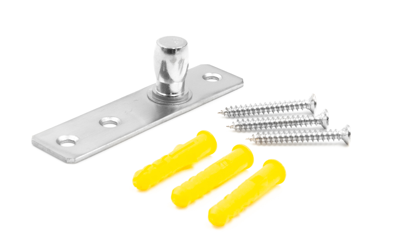 Ось верхняя, шлифованная, марка стали AISI 304. Представляет собой верхнюю ось для стеклянной маятниковой двери без фрамуги.