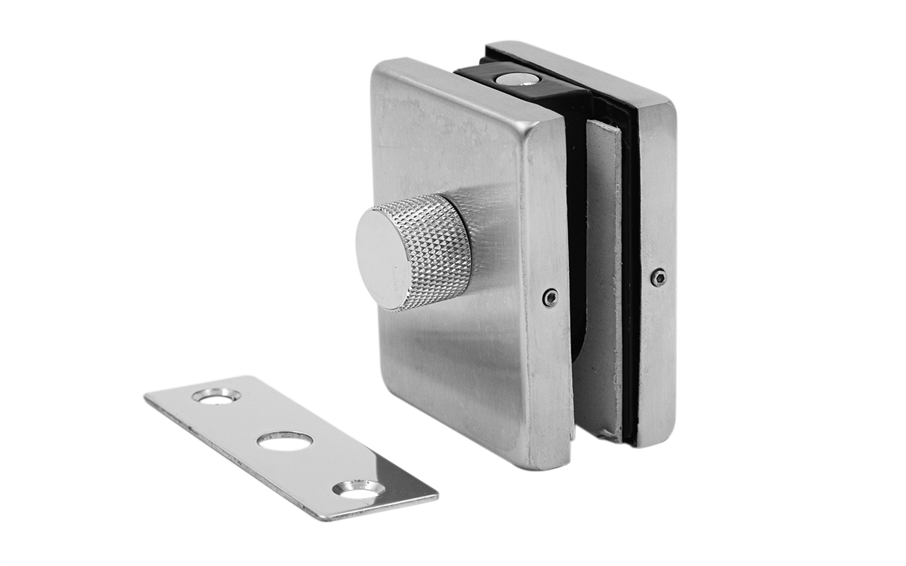 Замок для стеклянной двери угловой с круглым ригелем комплект, шлифованный t150 SSS купить в Казани