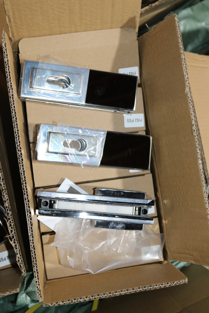 Сбоку нажимаем на крепления крышек и снимаем. Отвинчиваем винты, и фиксируем замок в подготовленный вырез в стекле. Далее закручиваем и фиксируем обратно крышки. Ответную часть крепим под замком с пробуренным отверстием под ригель.