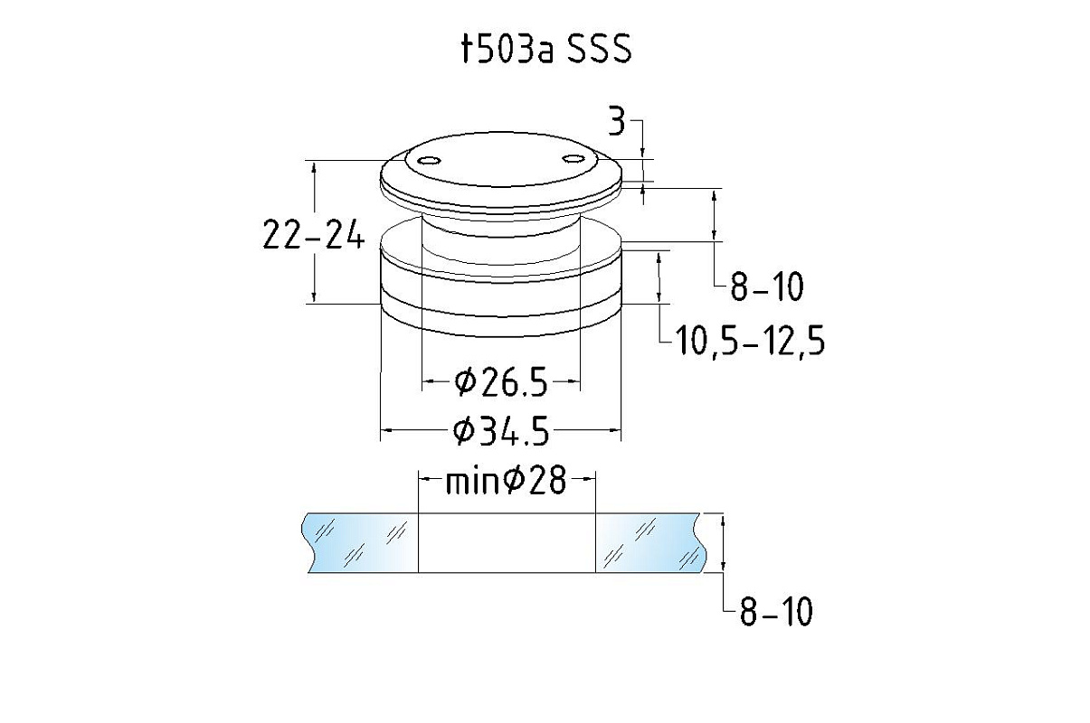 Точечный стеклодержатель 10.5-12.5 мм, регулируемый, без зенковки, для стекла 8-10 мм t503A SSS