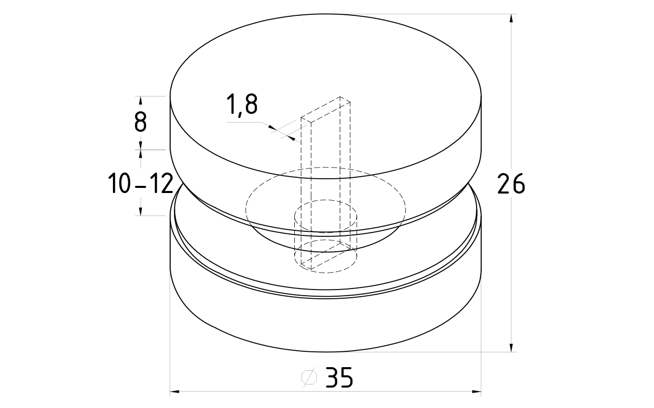 Внутри плоская пластинка 1.5 мм с резьбой, позволяет соединить стекло максимально плотно.