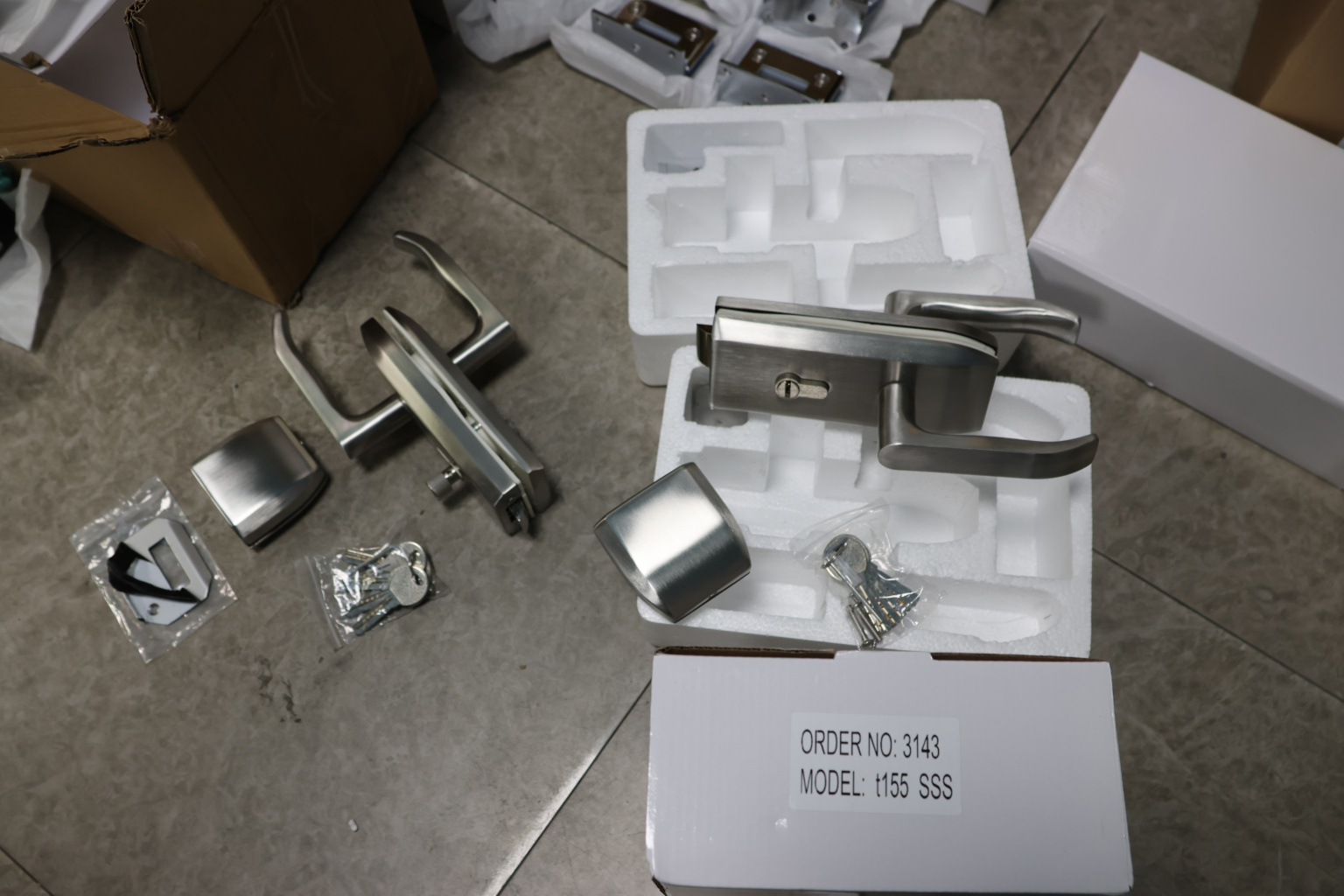 Замок для стеклянной двери с нажимной ручкой без притвора, евроцилиндр односторонний ключ/защелка, в комплекте ответная часть на стекло t155 SSS