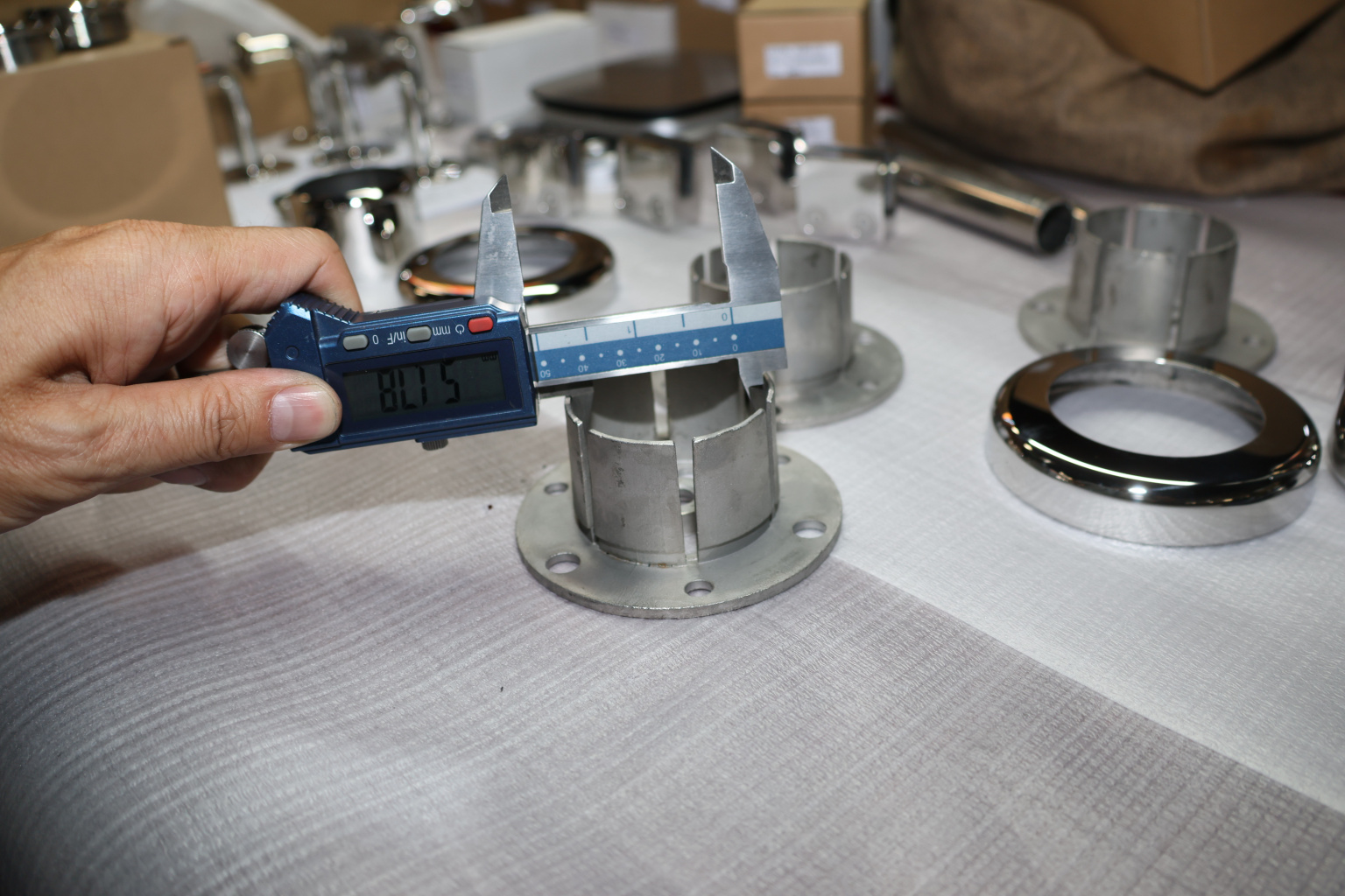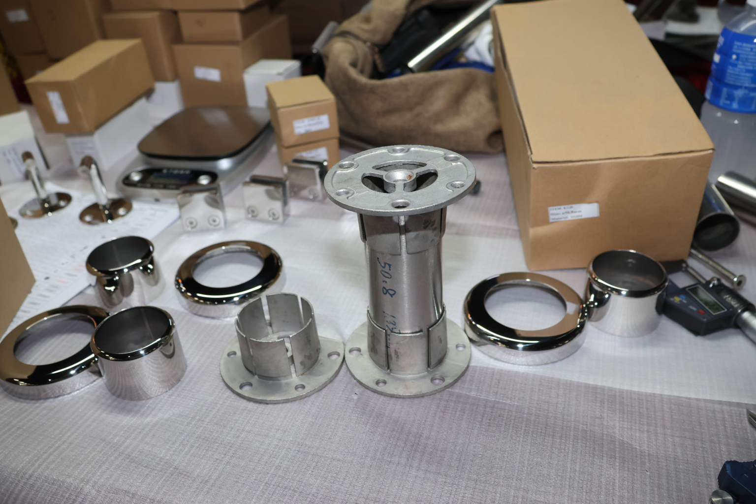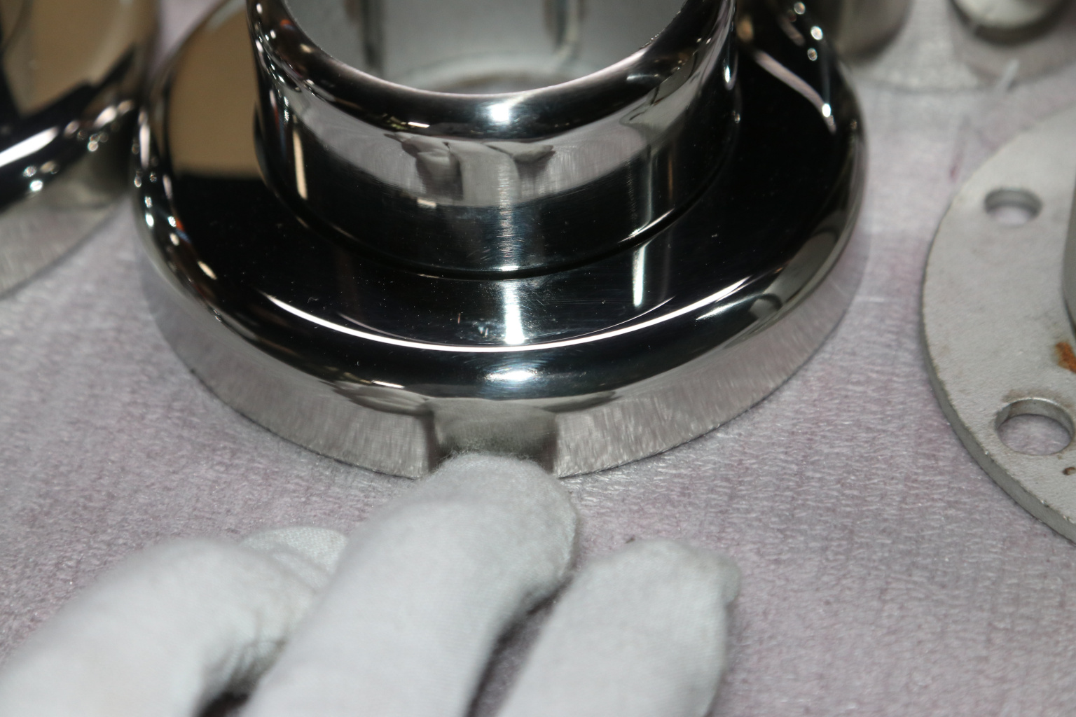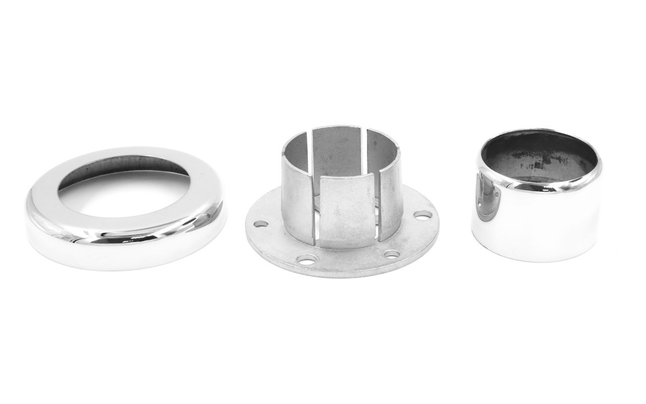 Цанга под трубу диаметром 50.8 мм. Деталь полированная, низ 10х90 под анкер 10 мм, 3 анкера М8. Марка стали - AISI 304