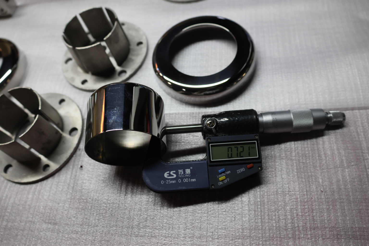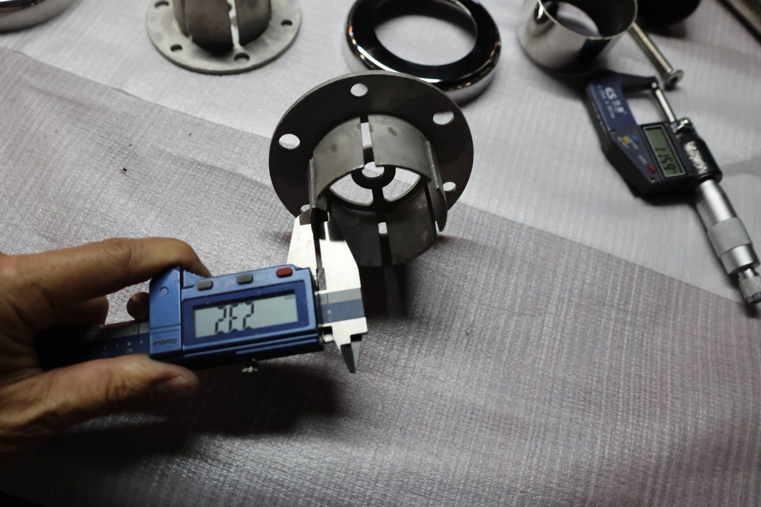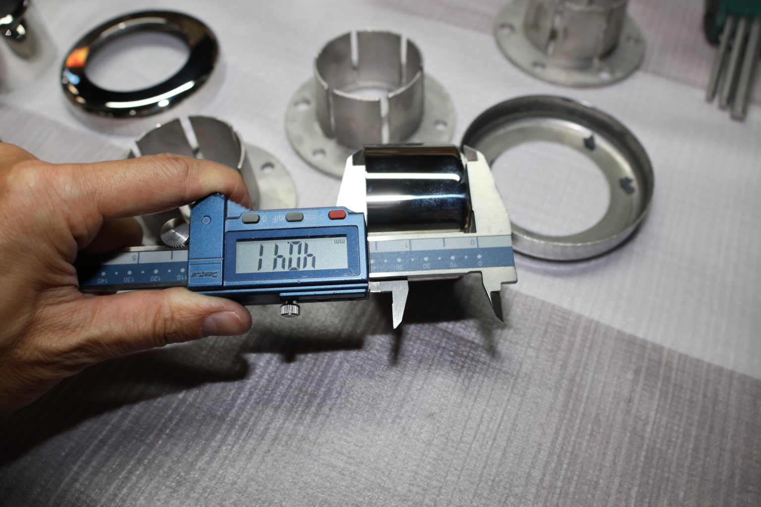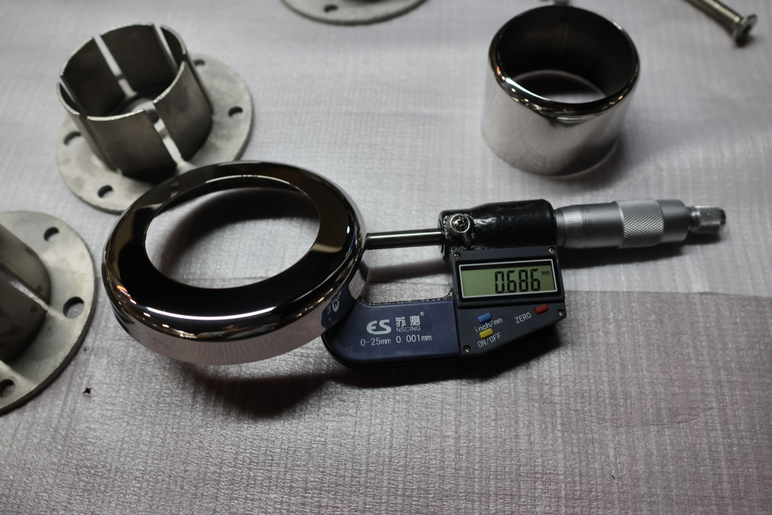 Цанга под трубу диаметром 50.8 мм. Деталь полированная, низ 10х90 под анкер 10 мм, 3 анкера М8. Марка стали - AISI 304