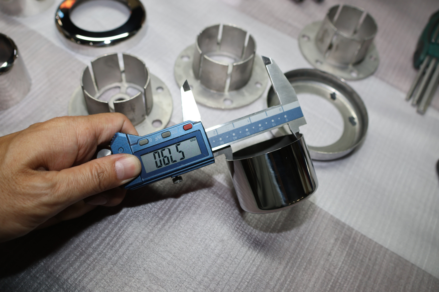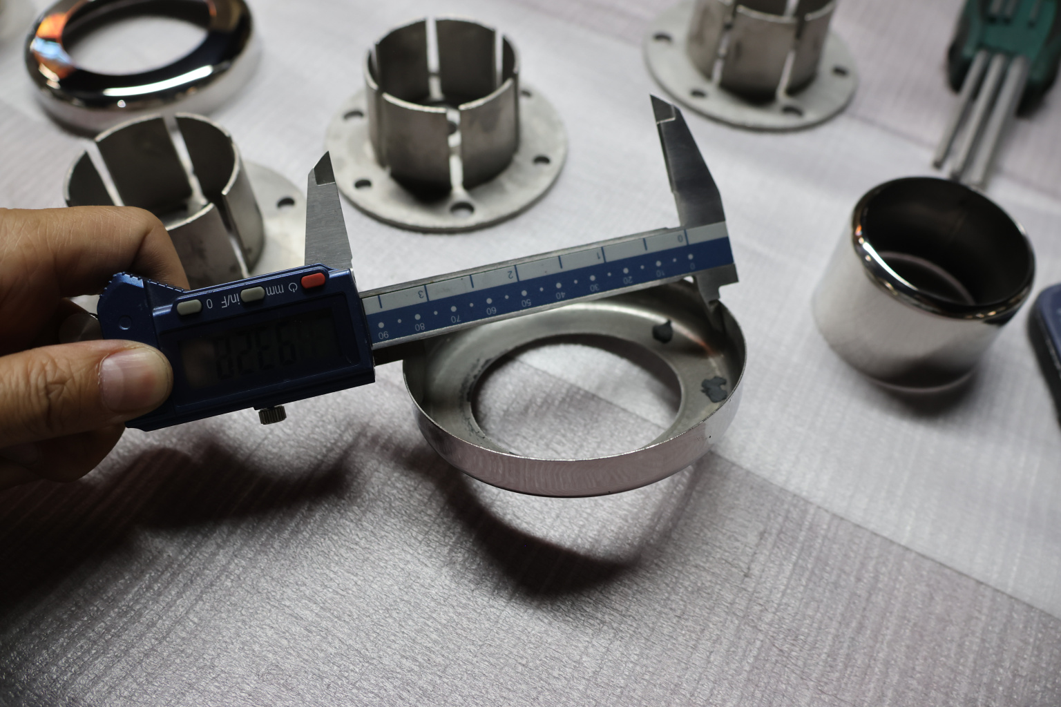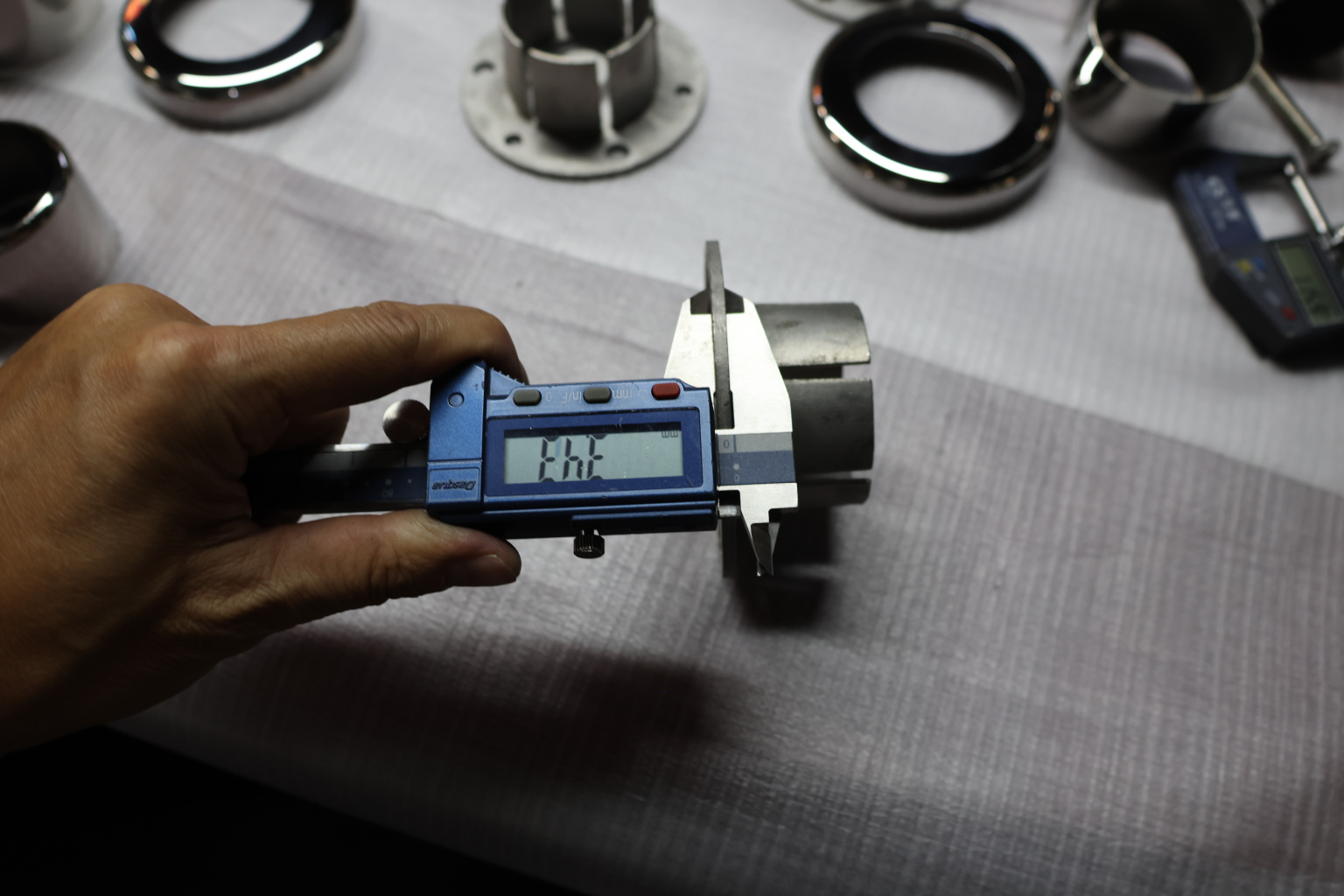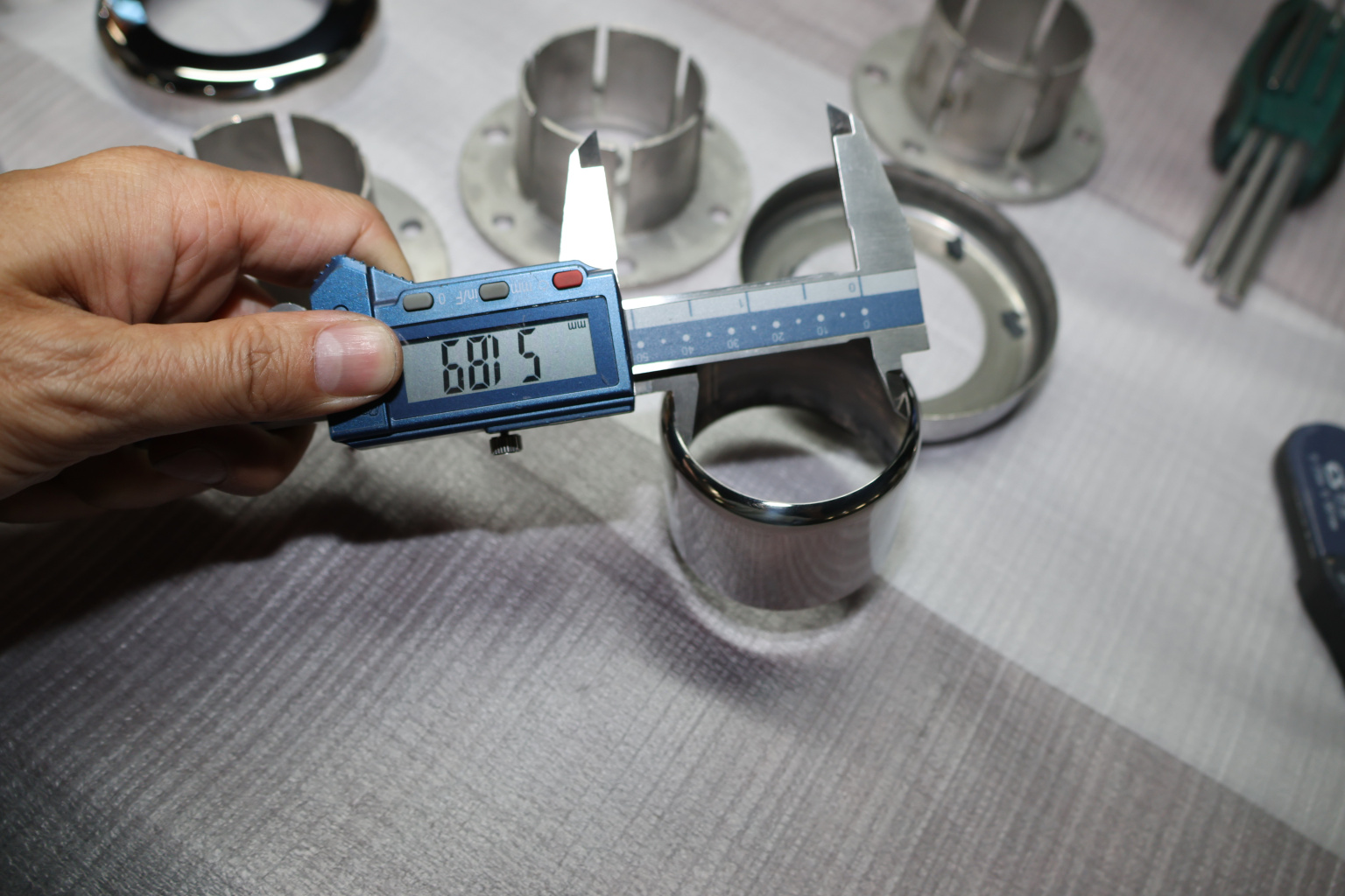 Цанга под трубу диаметром 50.8 мм. Деталь полированная, низ 10х90 под анкер 10 мм, 3 анкера М8. Марка стали - AISI 304