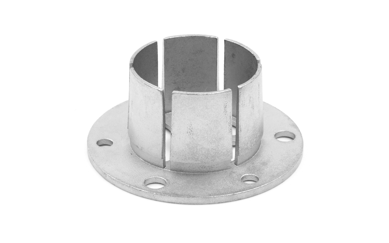 Деталь для крепления стоек из трубы Ø50.8 мм. Фиксируют через саморез сквозь лепестки основания цанги или подваривают. Наконечником в самосборных ограждениях может быть k042.