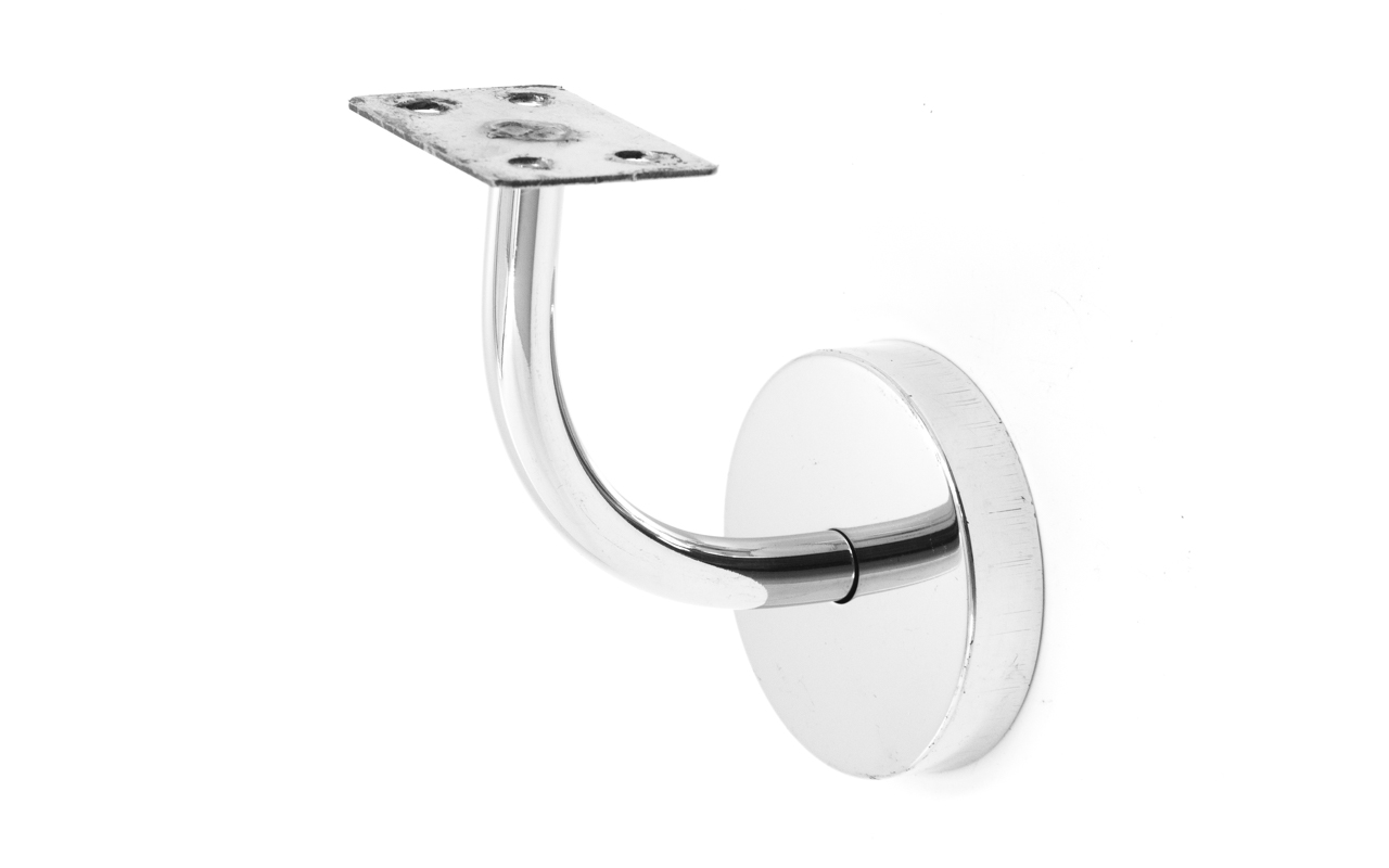 Применяется для бокового крепления нержавеющего поручня под сварку или на саморезы. Ложемент у пристенка под плоскость, так что вы с легкостью можете крепить любую профильную трубу. К стене стальной держатель крепится фланцем на три самореза ⌀3 мм.